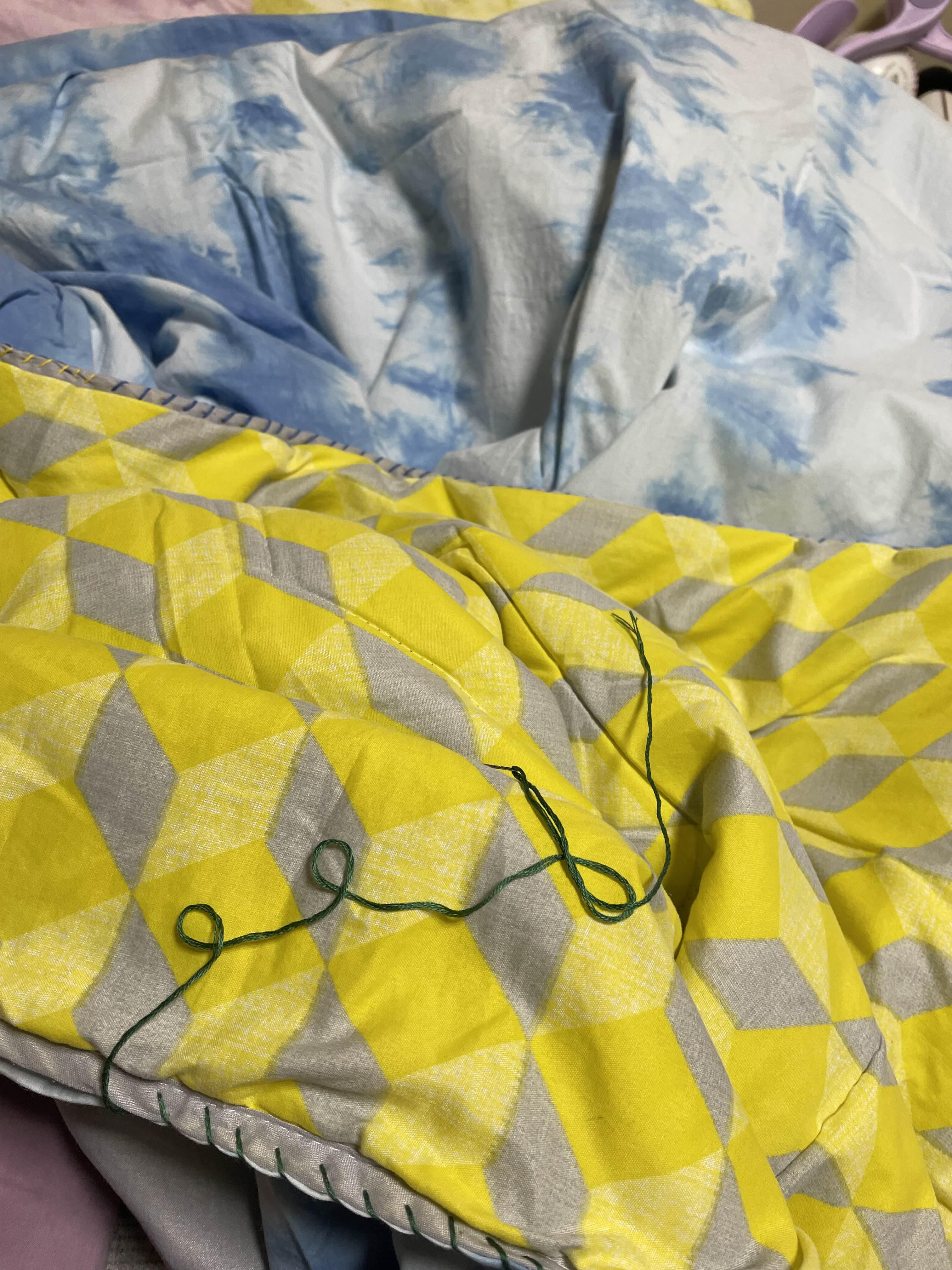 이불이 커서 염색한 천도 많이 들었고 바느질도