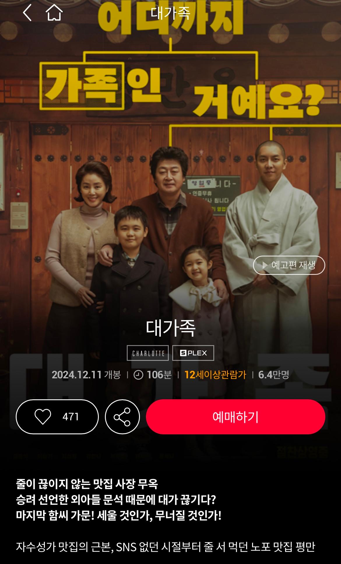 대가족이라는 영화이니 재미있을 것 같다.