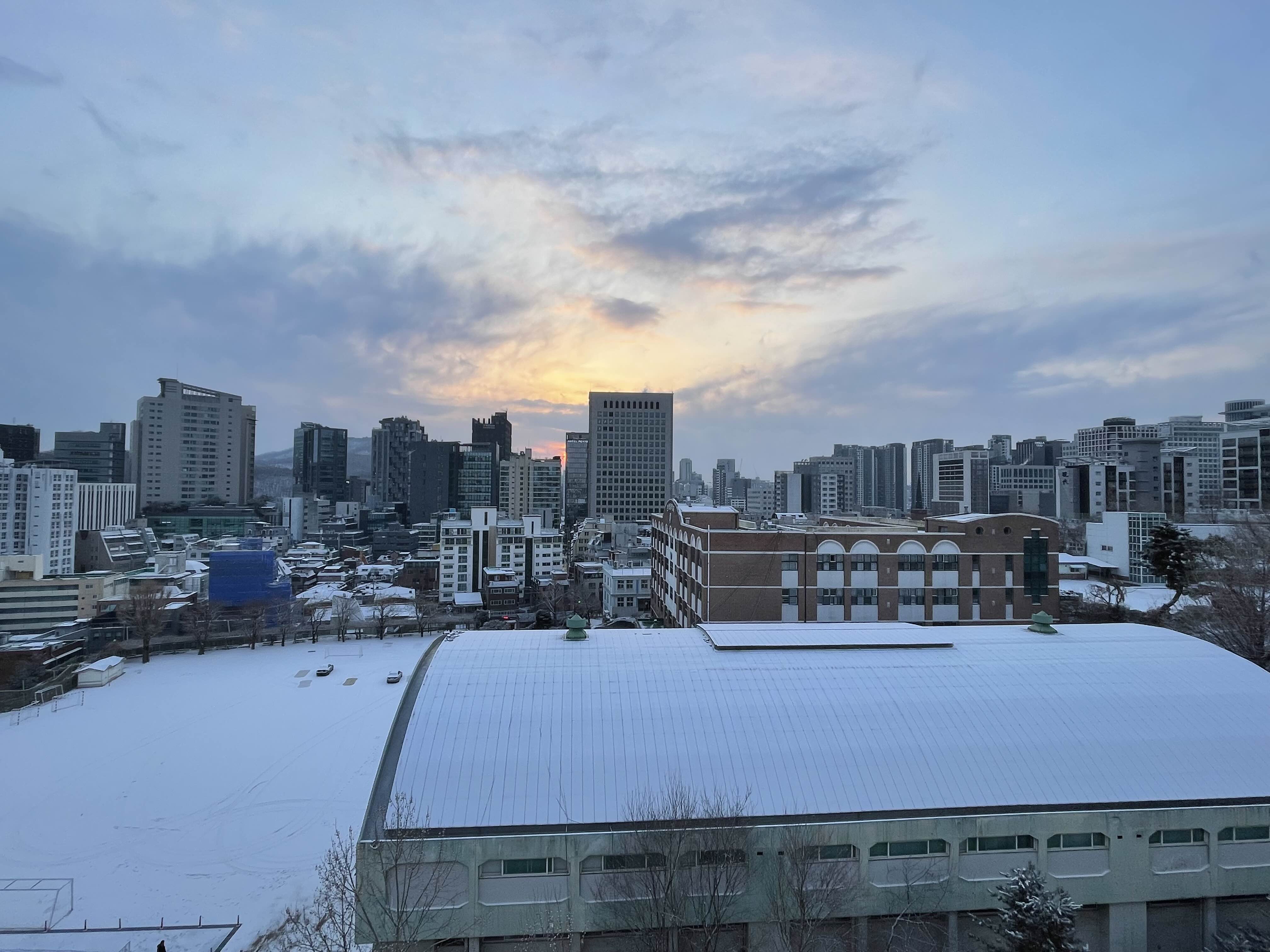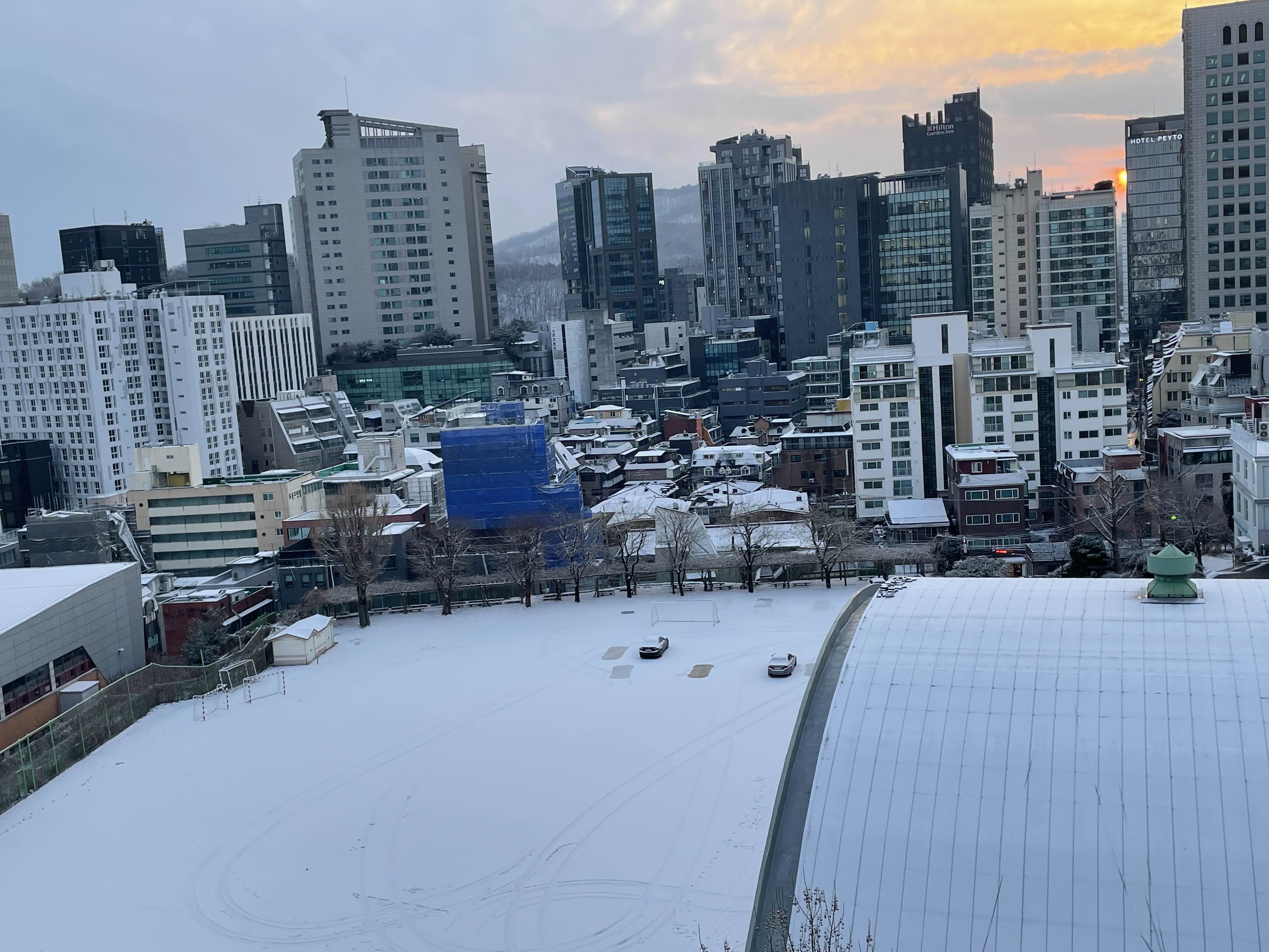 은성중학교 운동장이 눈으로 하얗게 바뀌었다.