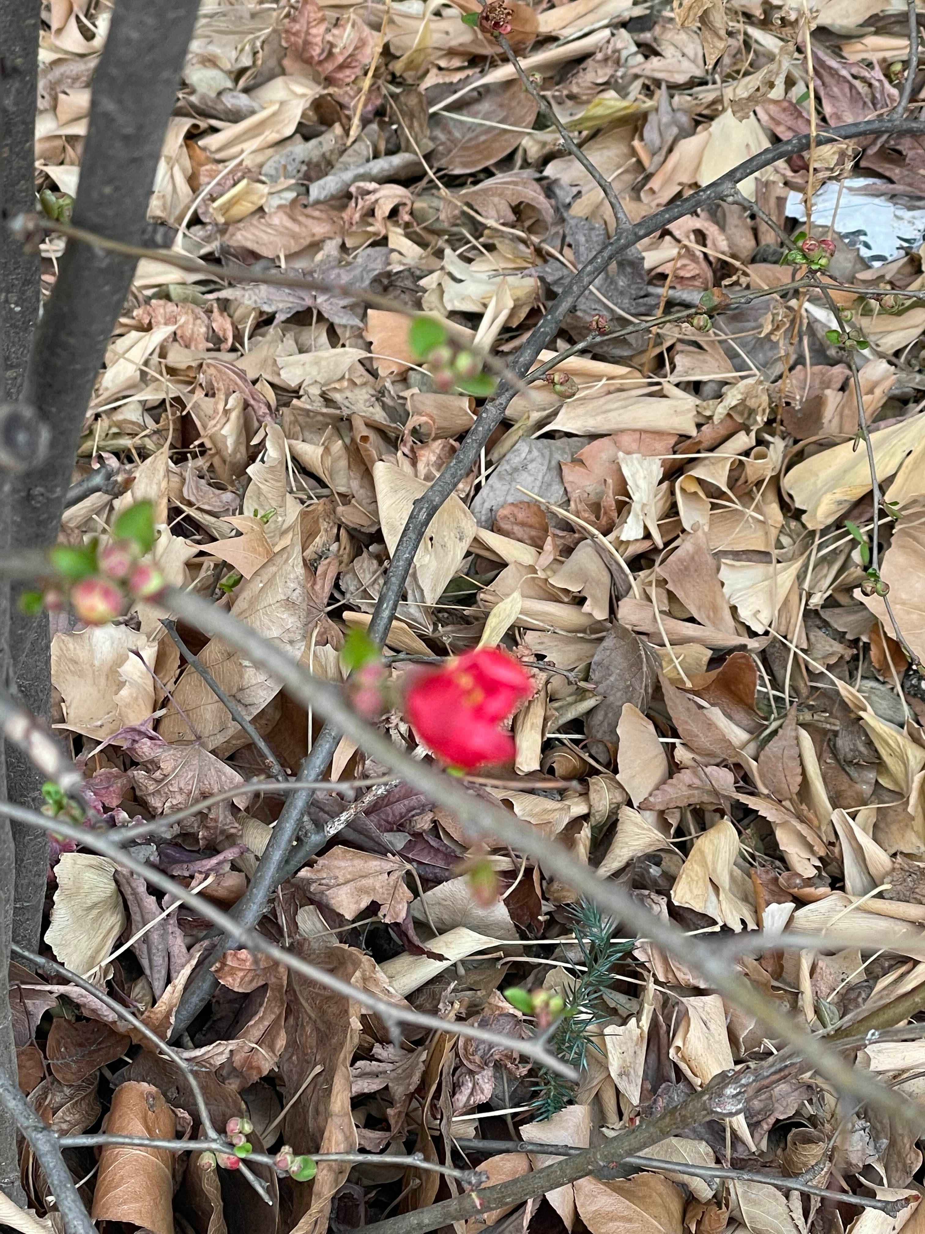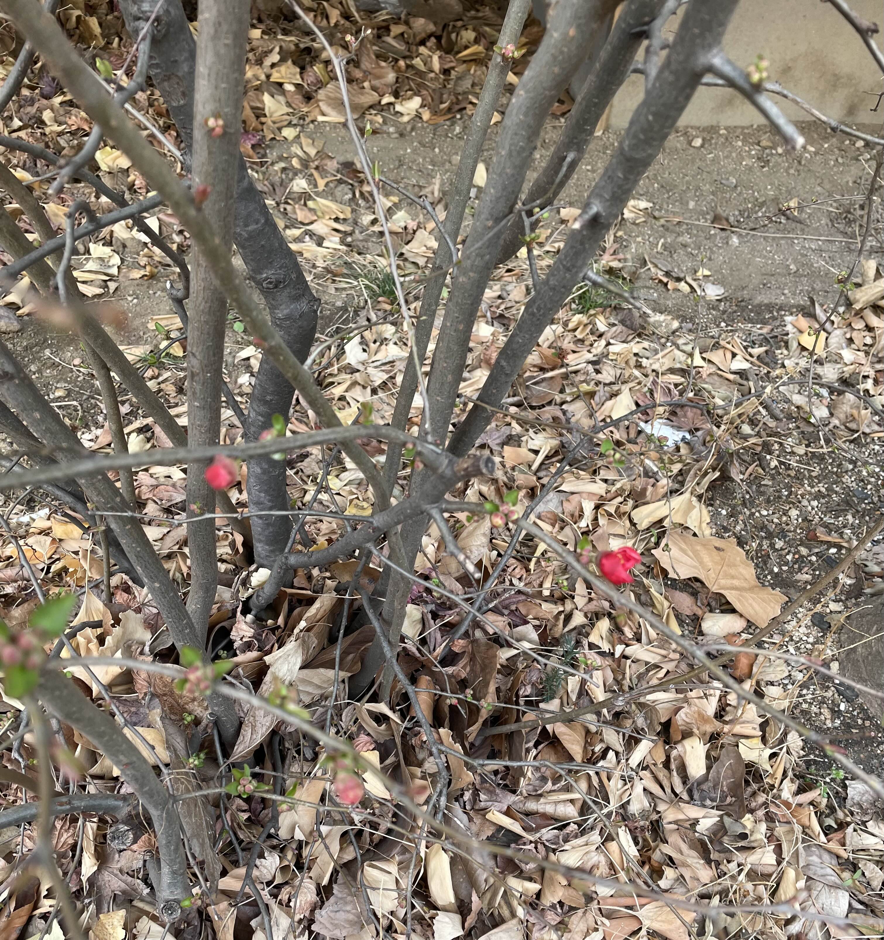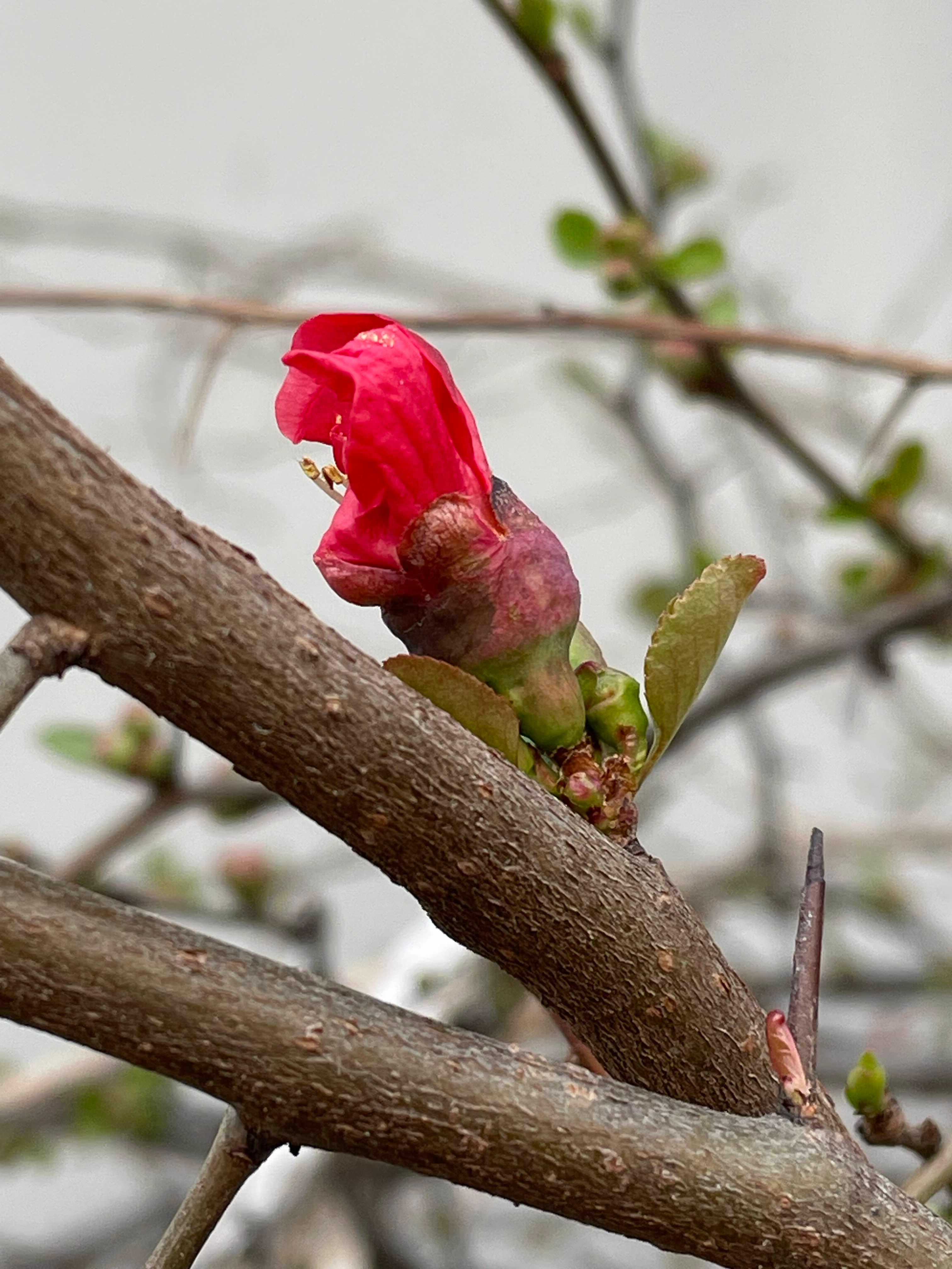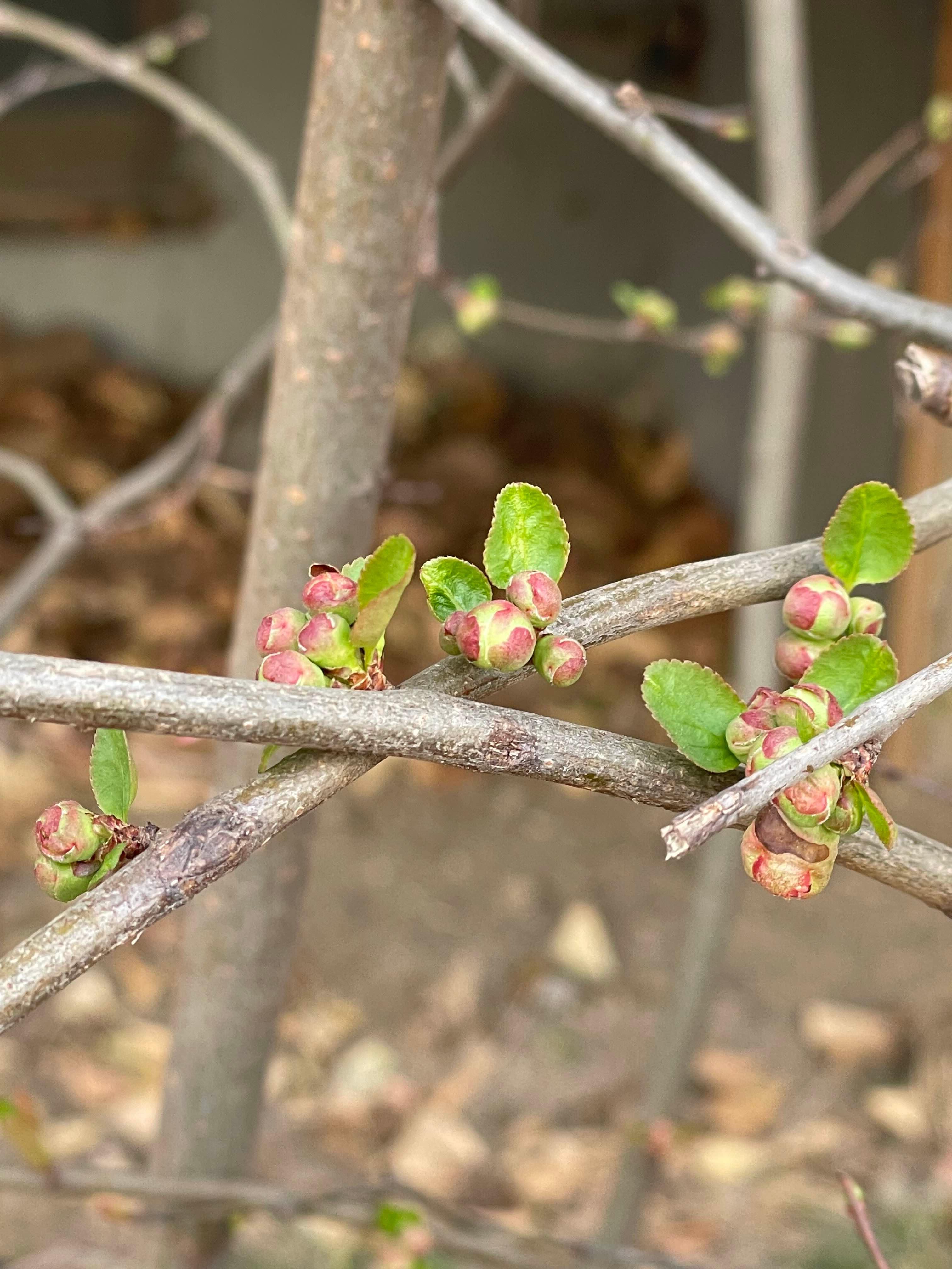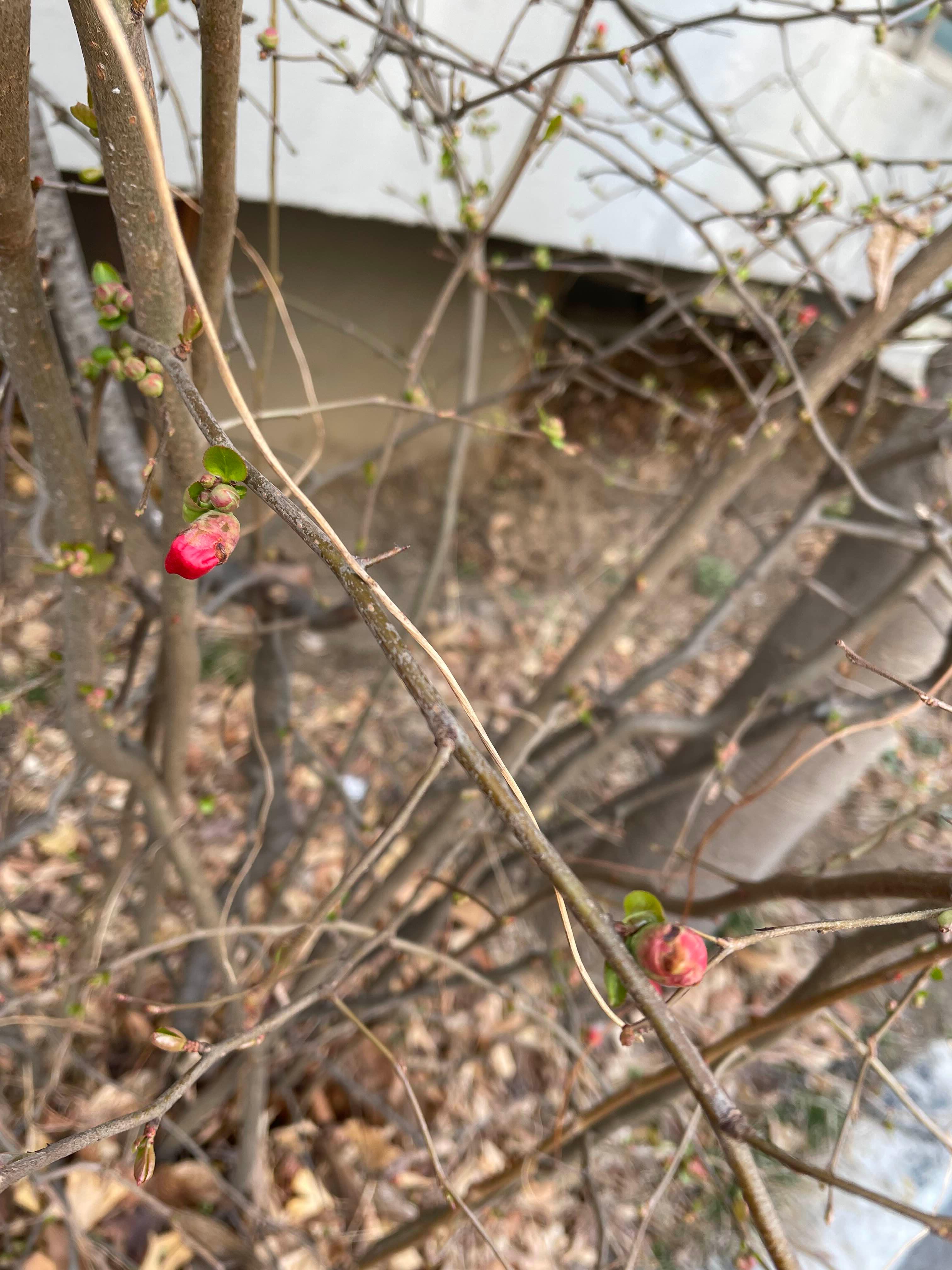 명자나무가 붉은 꽃을 피우다
