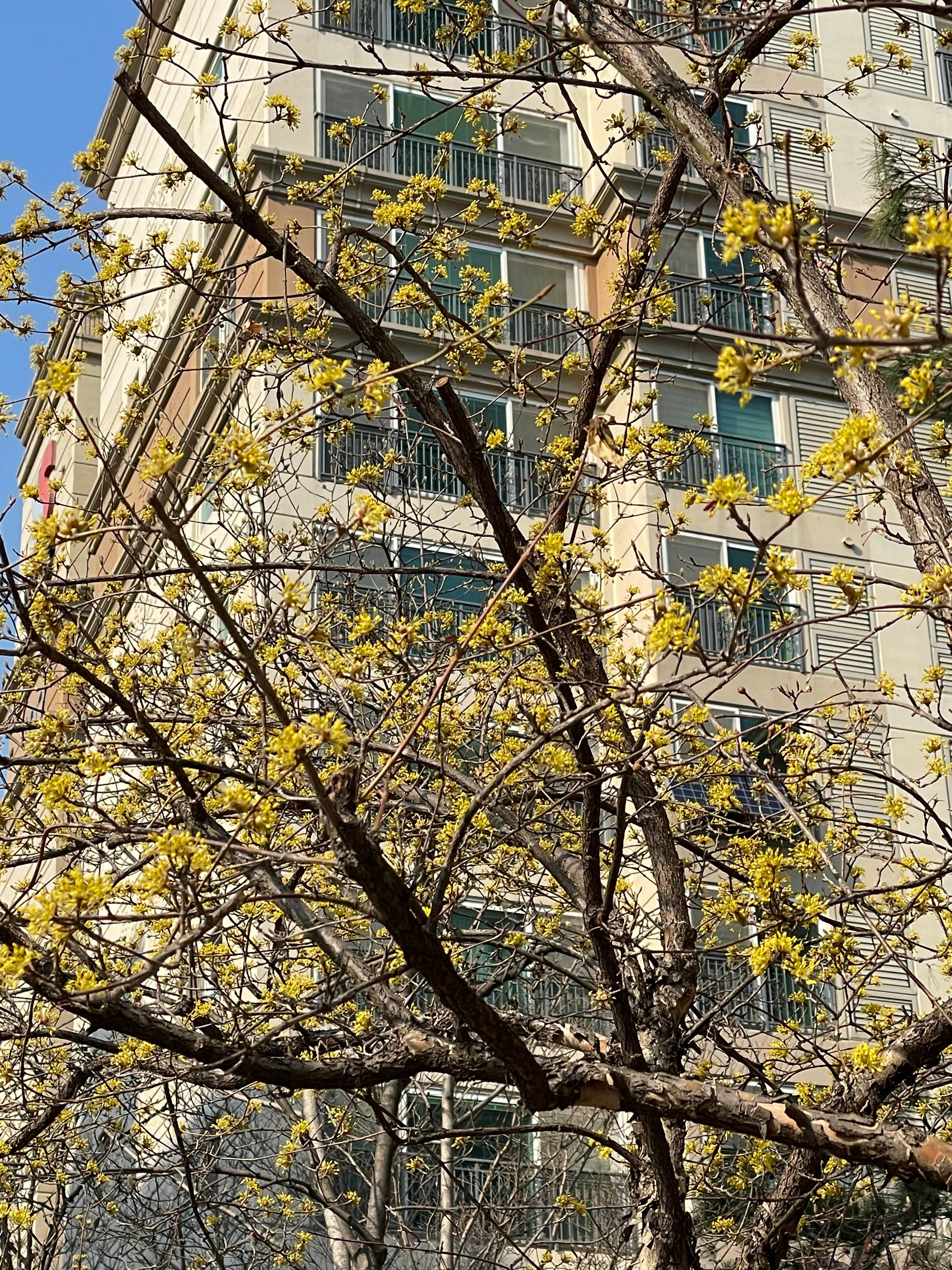 햇볕에 활짝 웃는 산수유가 예쁘다.