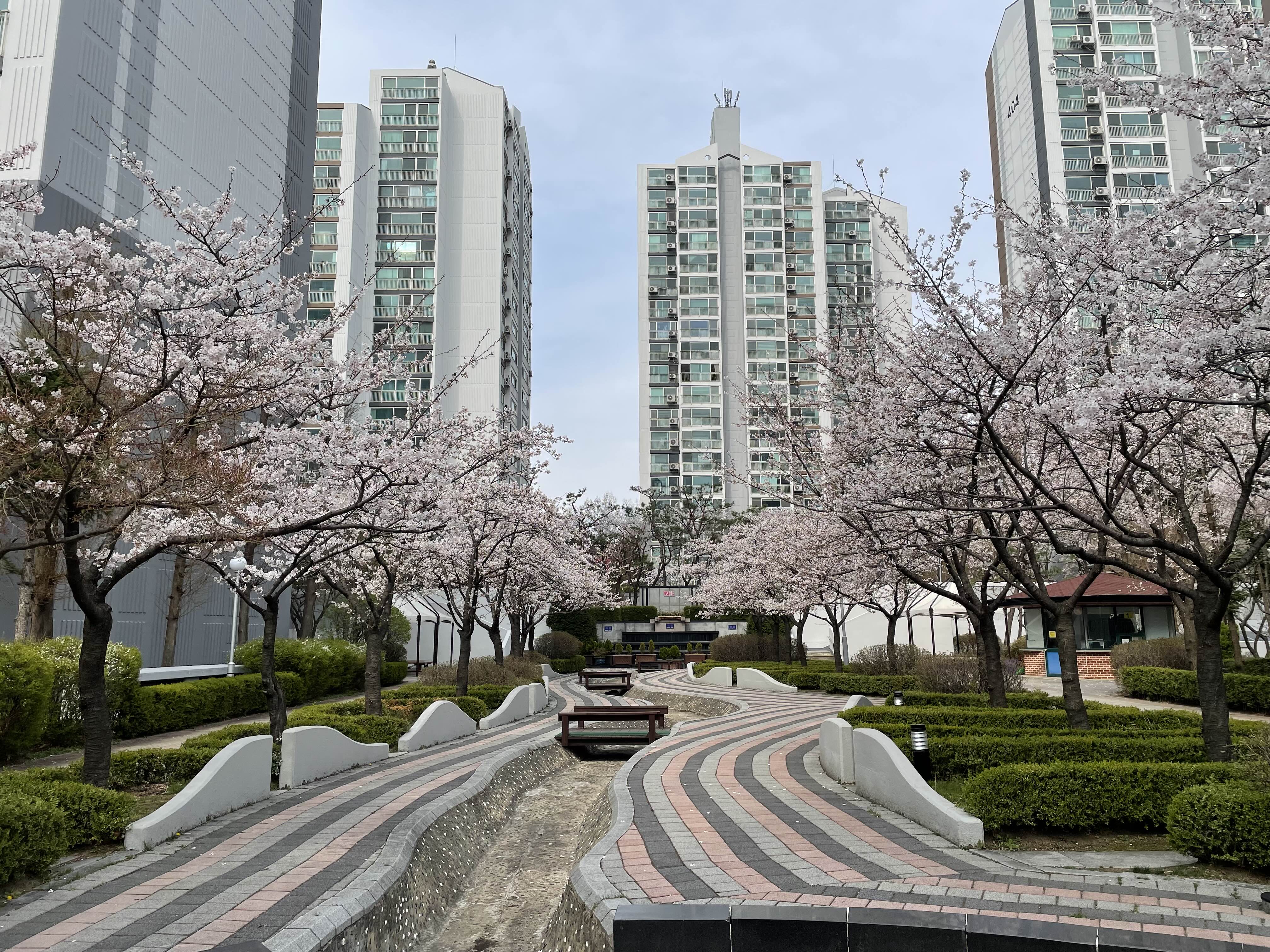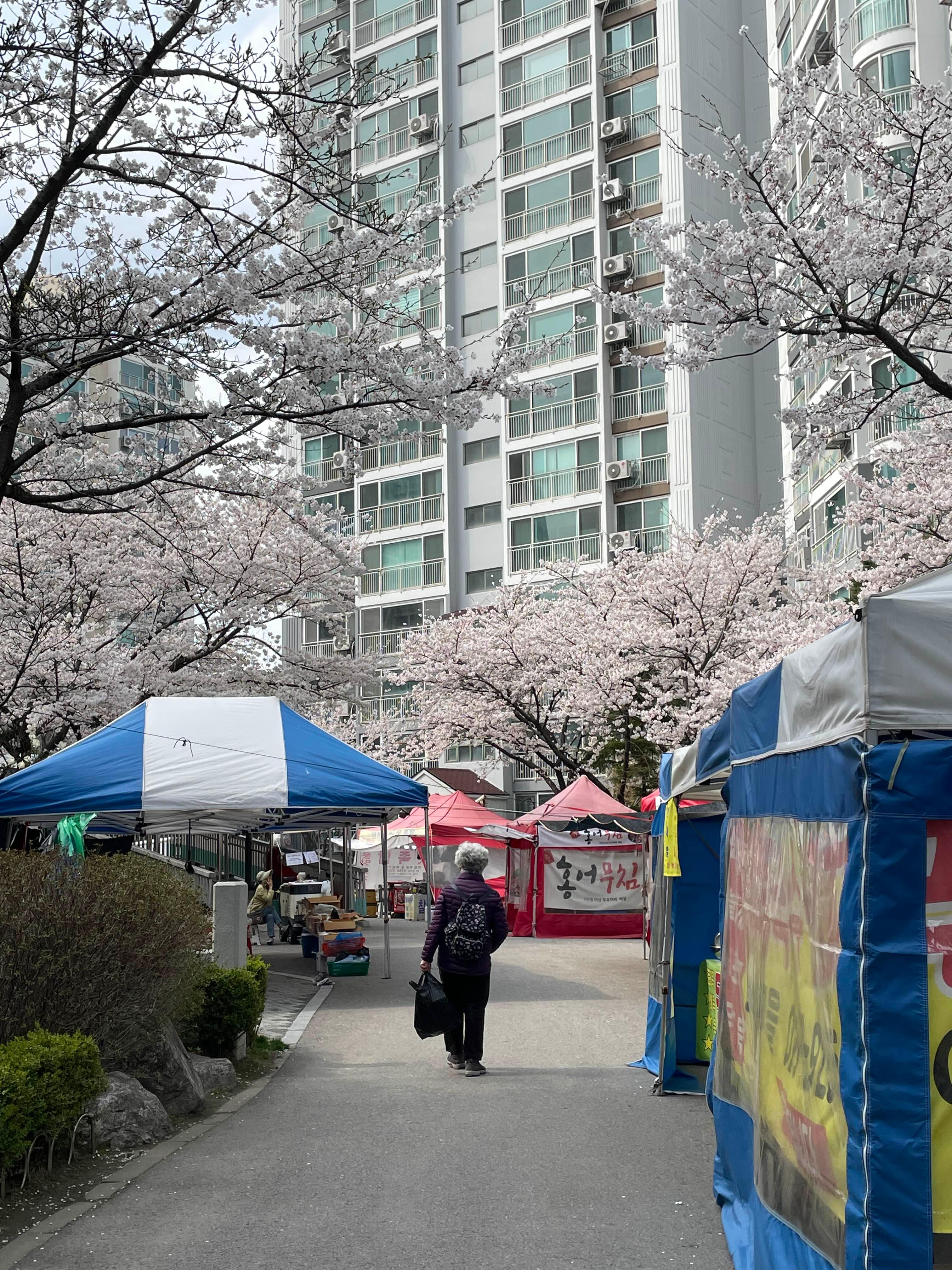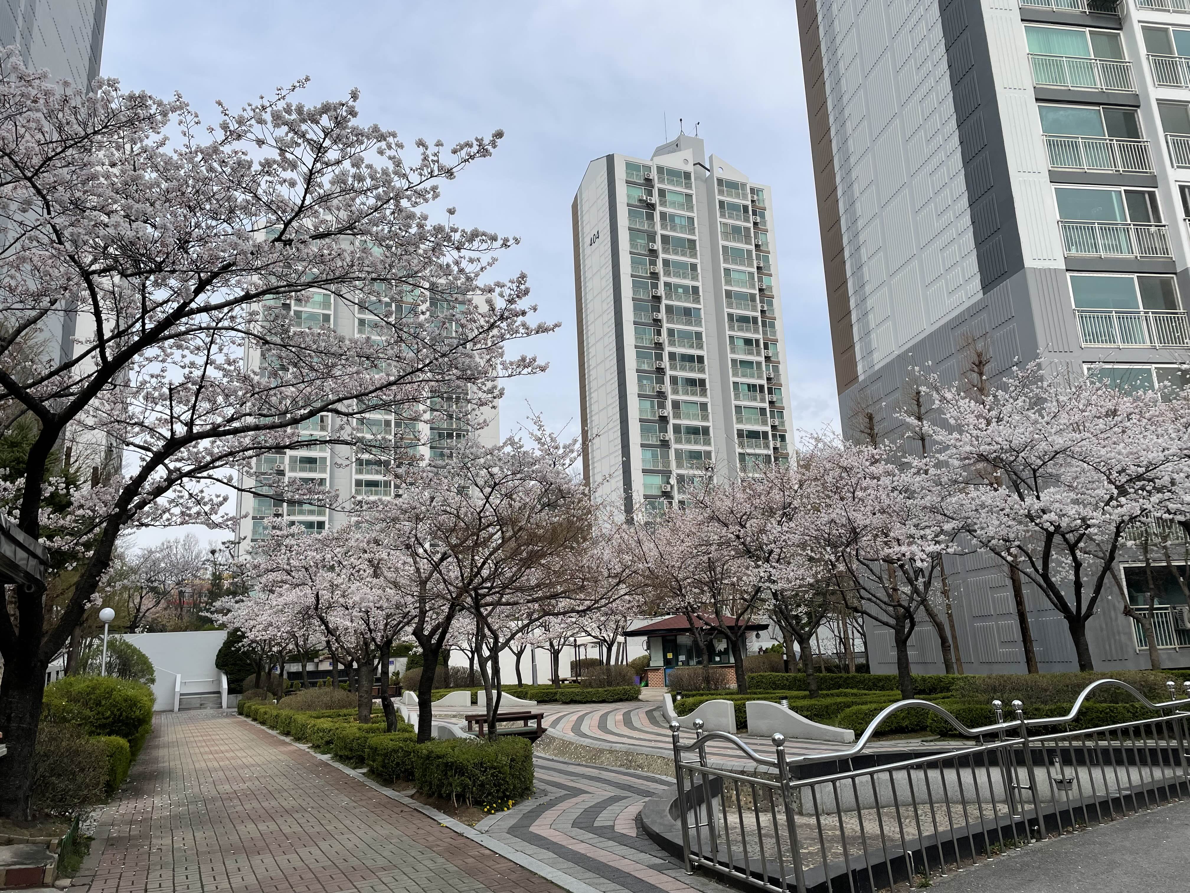 그래도 봄 벚꽃이 자연스럽게 울타리를 만들어