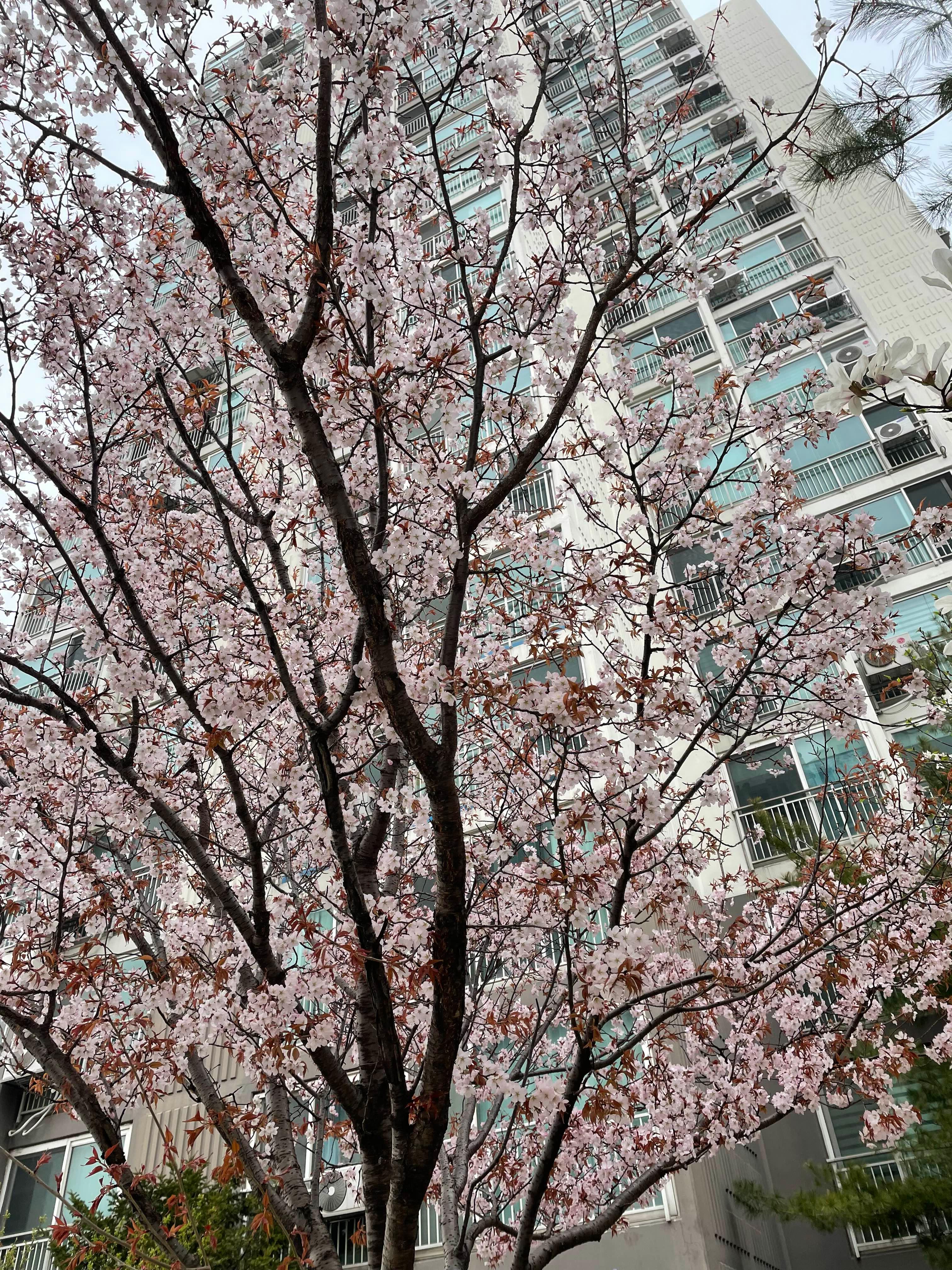 벚꽃의 분홍은 파스텔을 문질러놓은 듯하다.