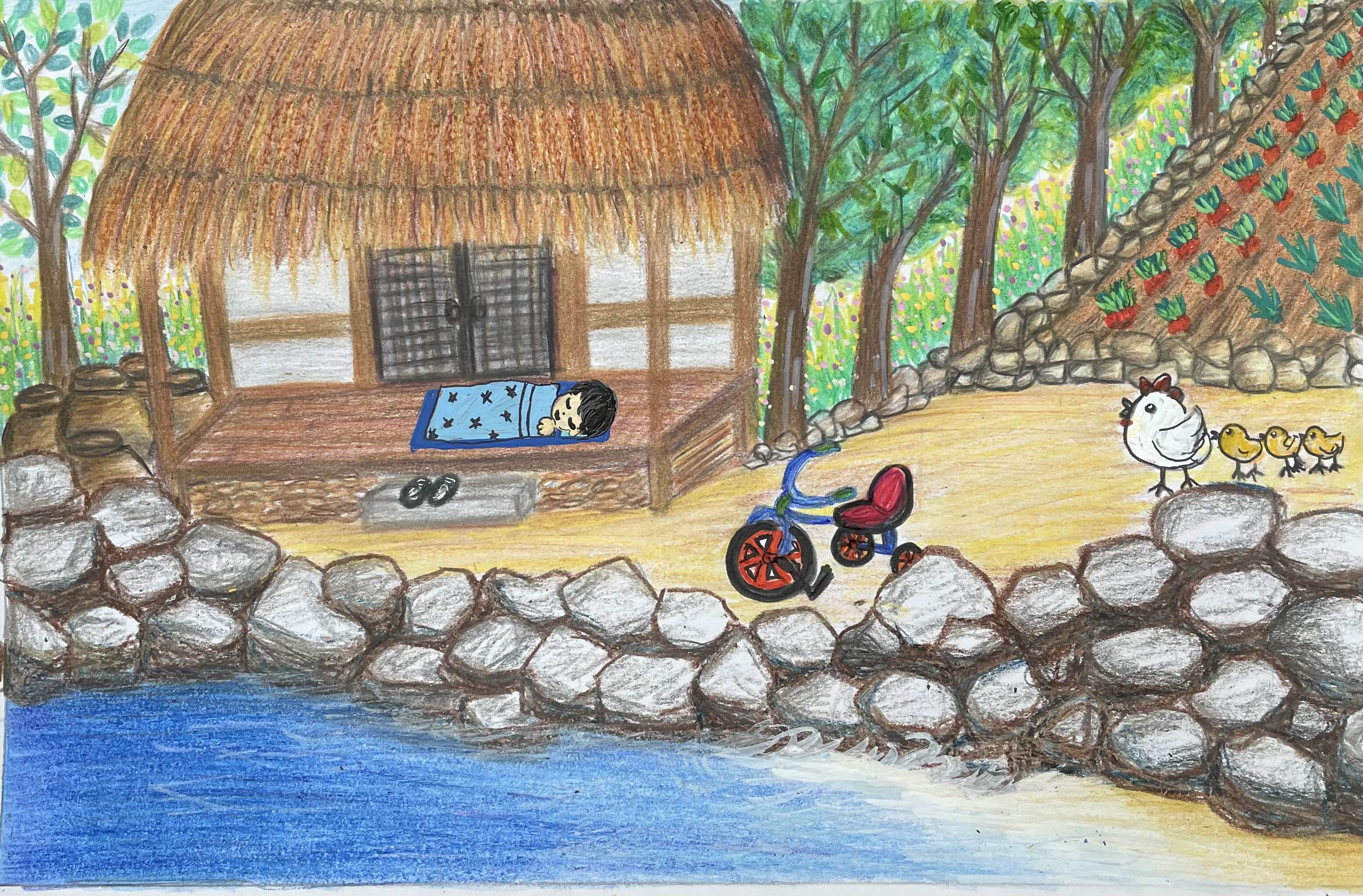 종이에 색연필. 크레용으로 표현한 그림이다.