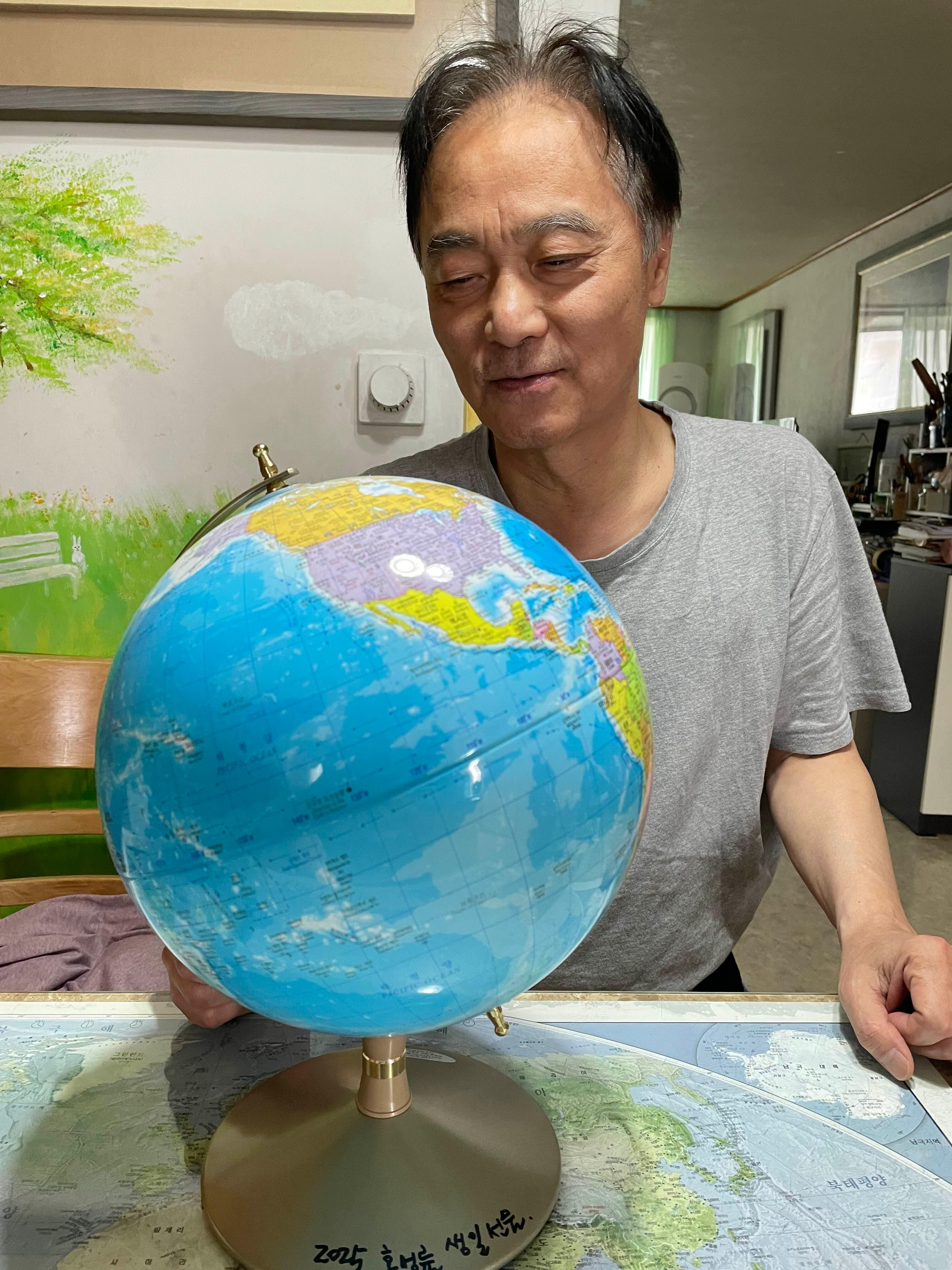 손자와 세계 여러 나라를 지구본에서 찾으며