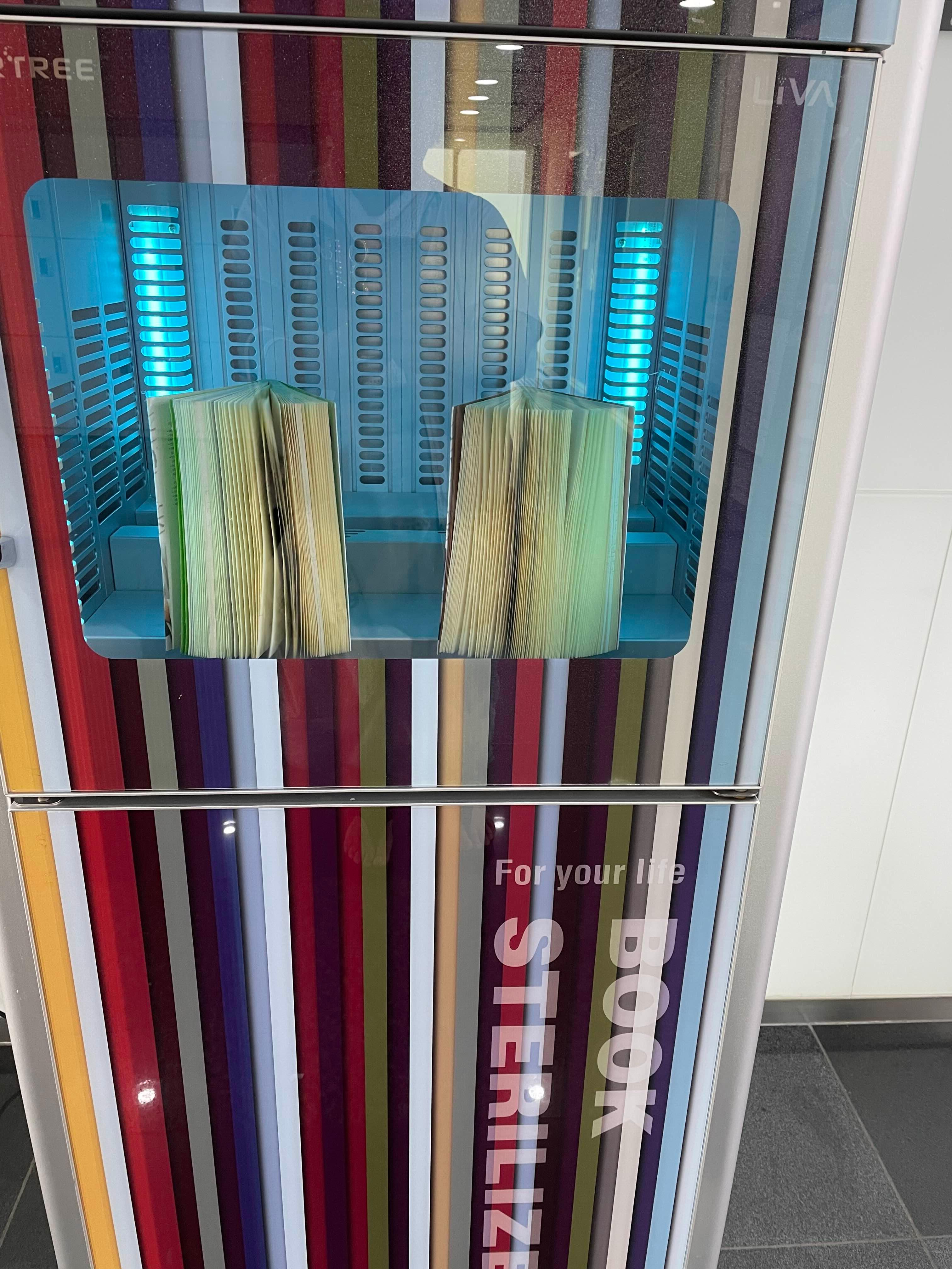 오래된 책도 빌리기에 책을 소독기에 넣었다.
