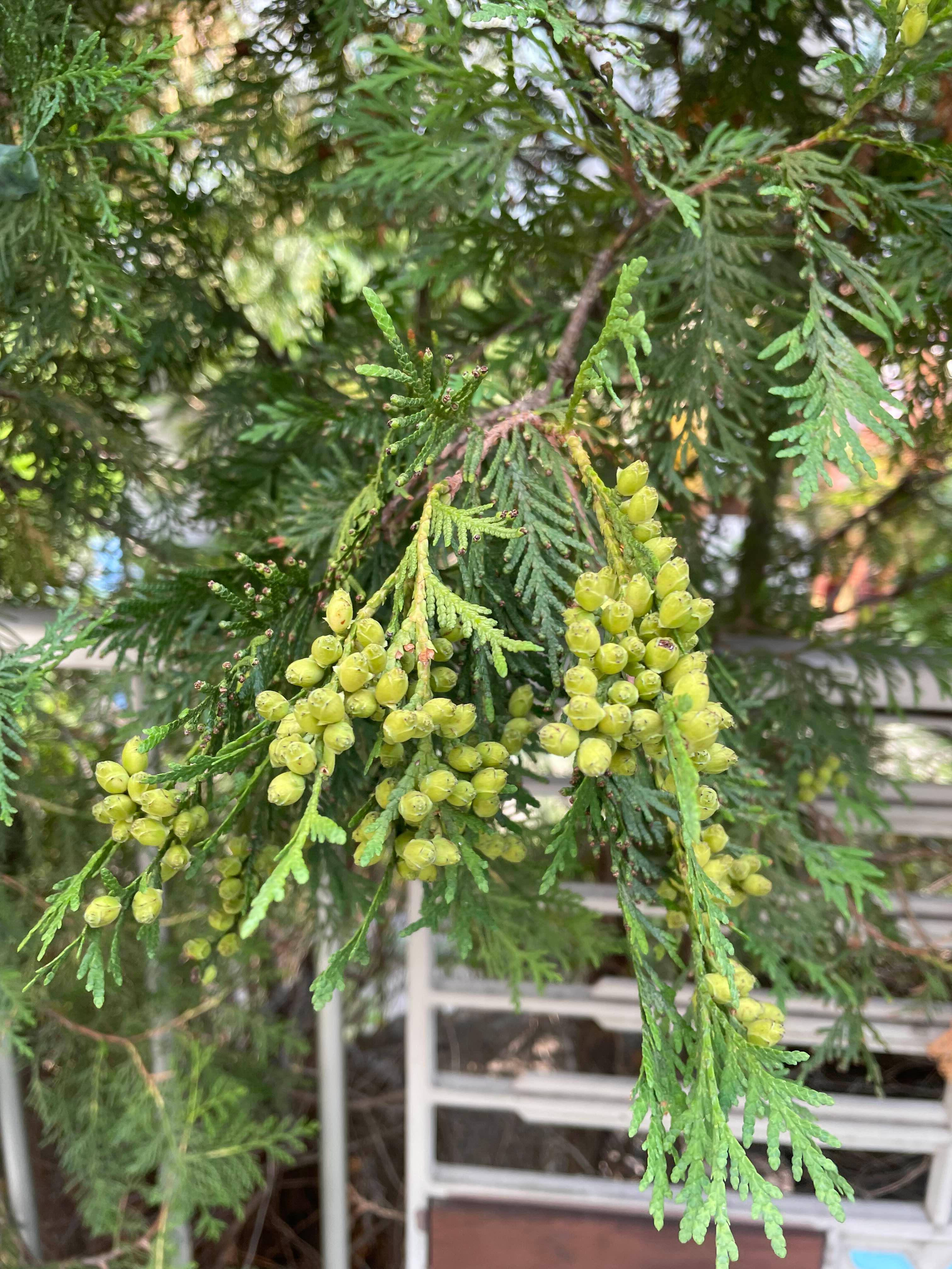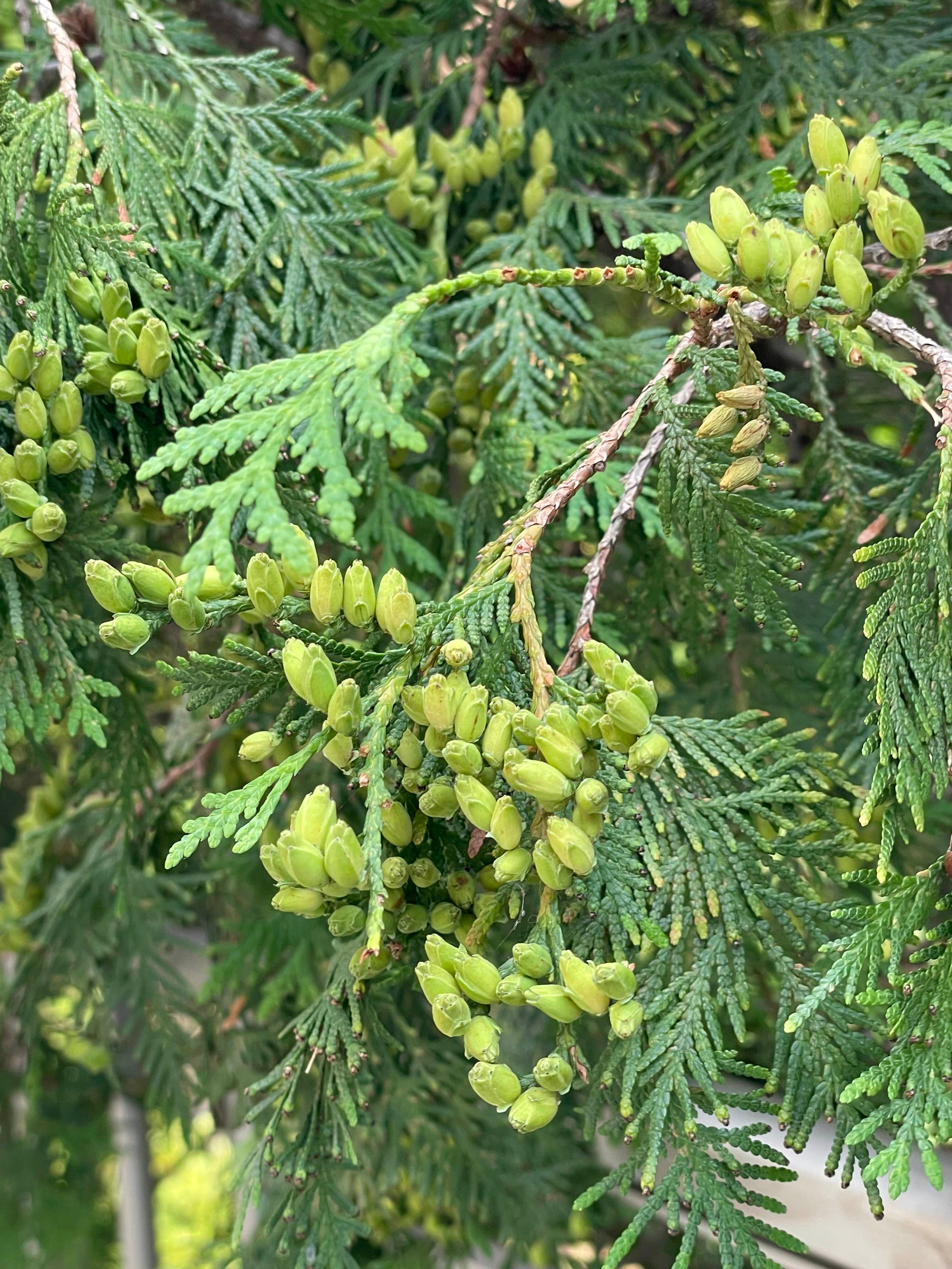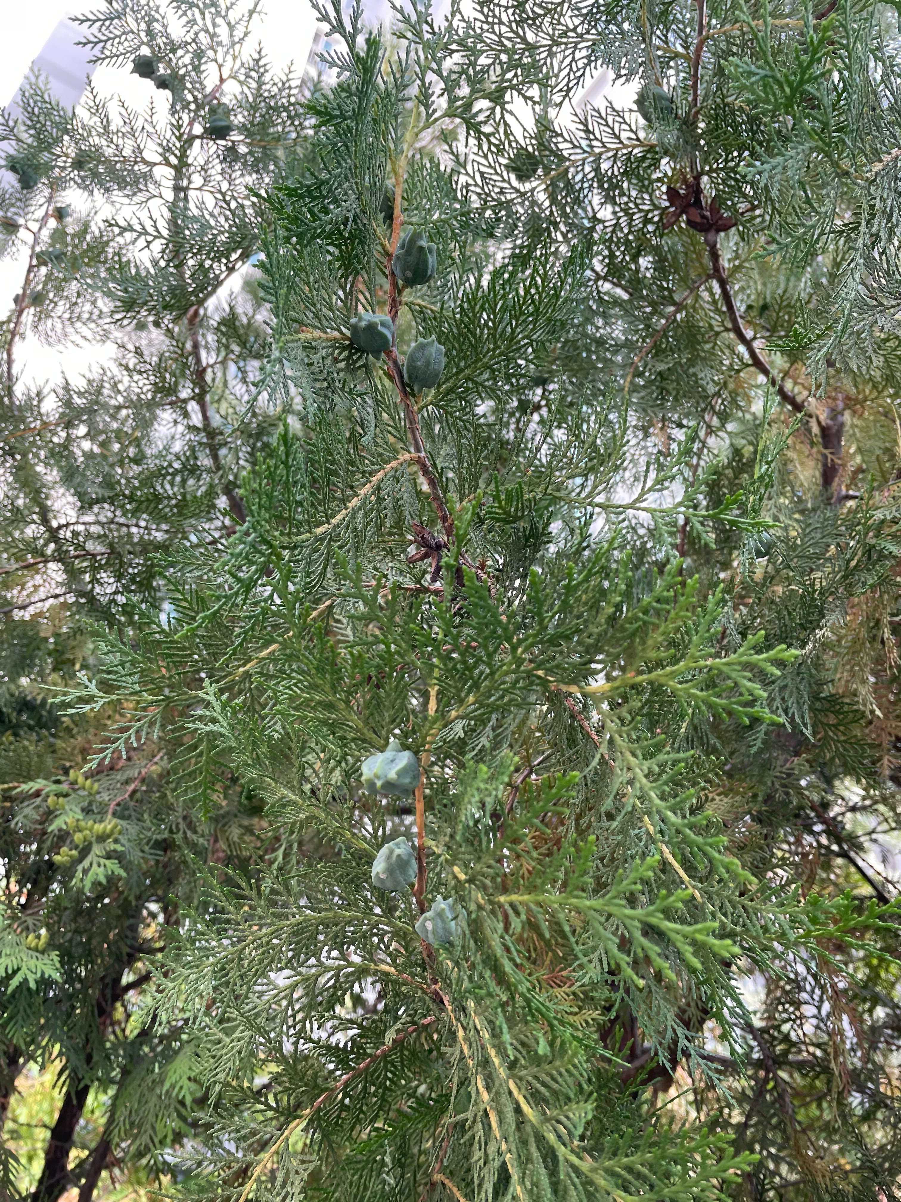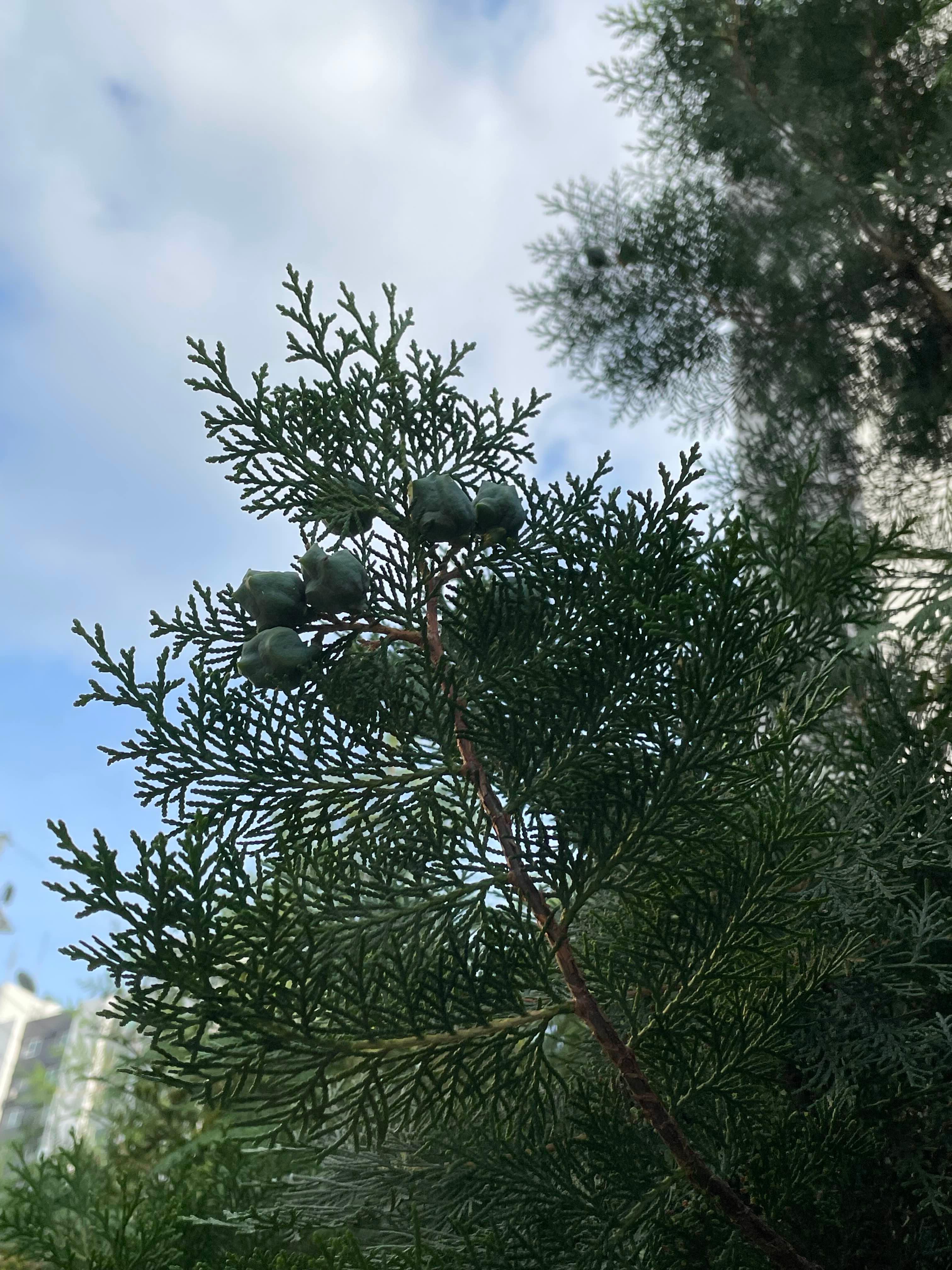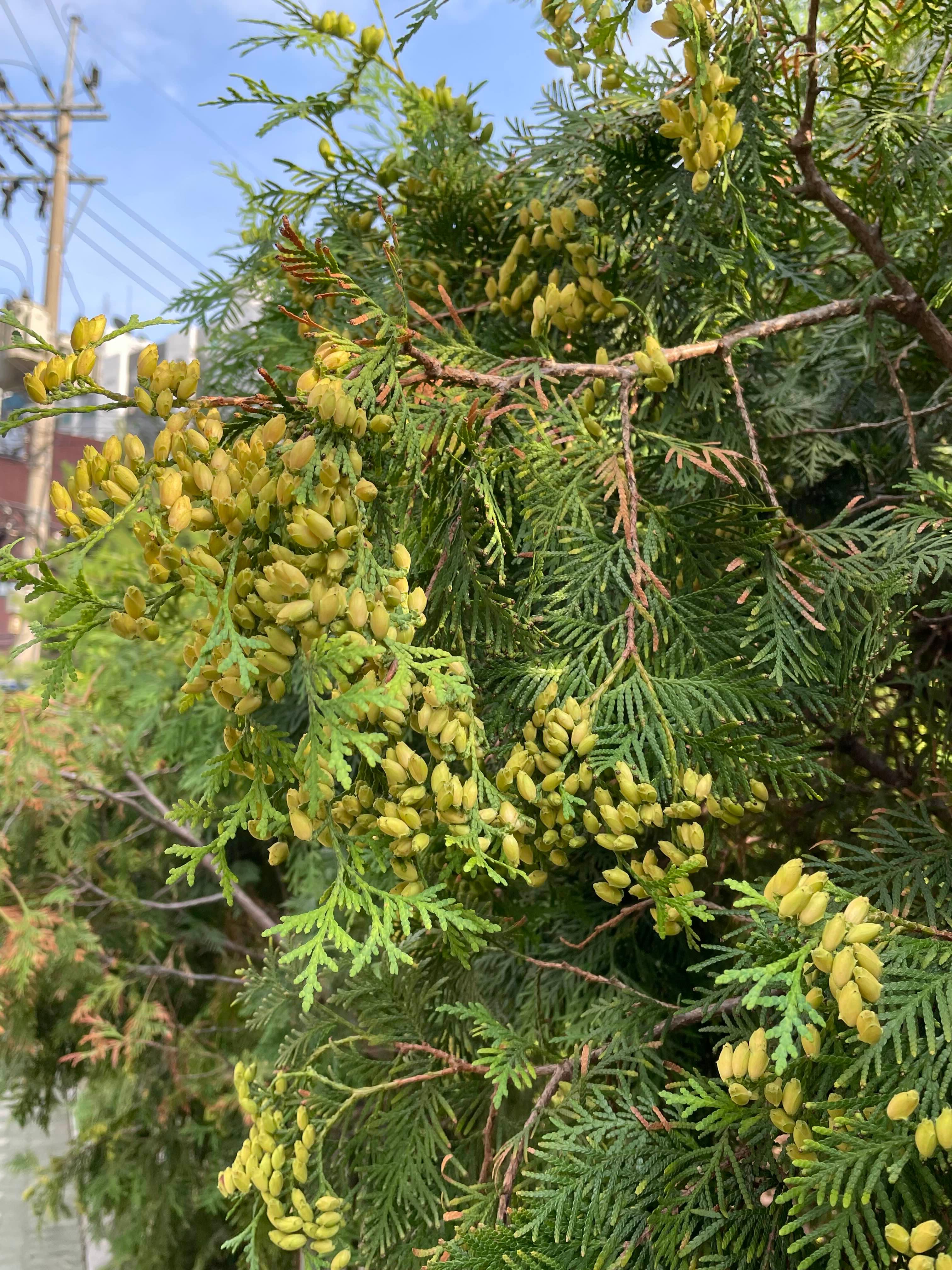 비늘처럼 생긴 잎은 4장씩 십자 형태로 모여 달린다.