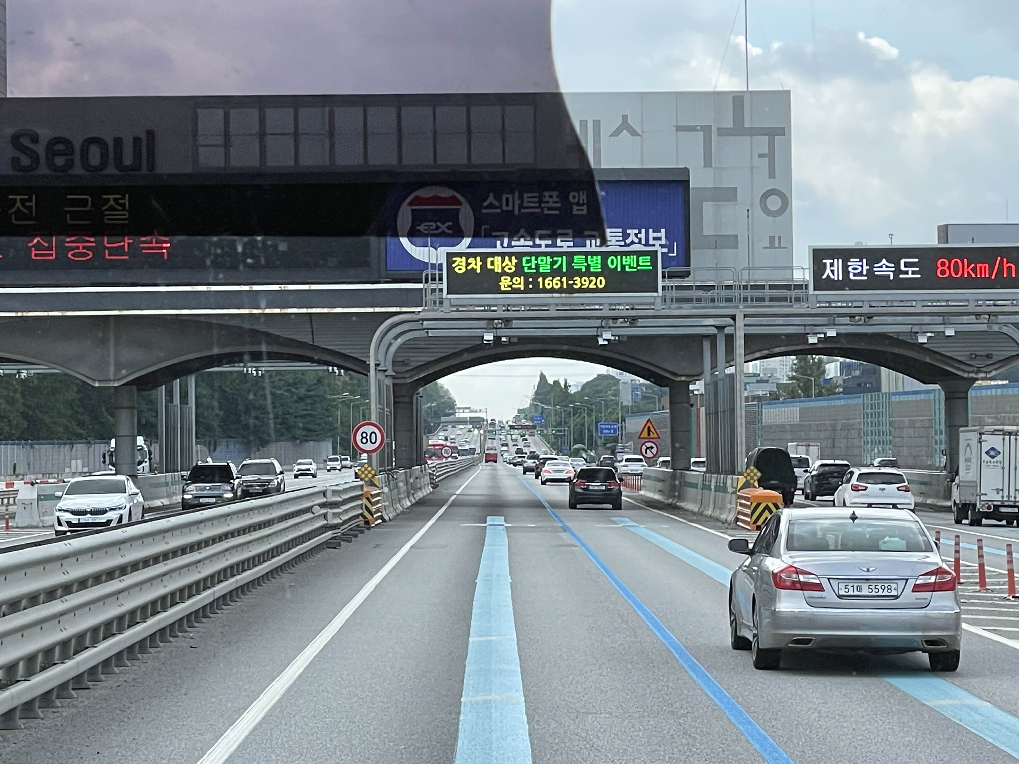 버스안도 한가하고 고속도로로 한산하다.