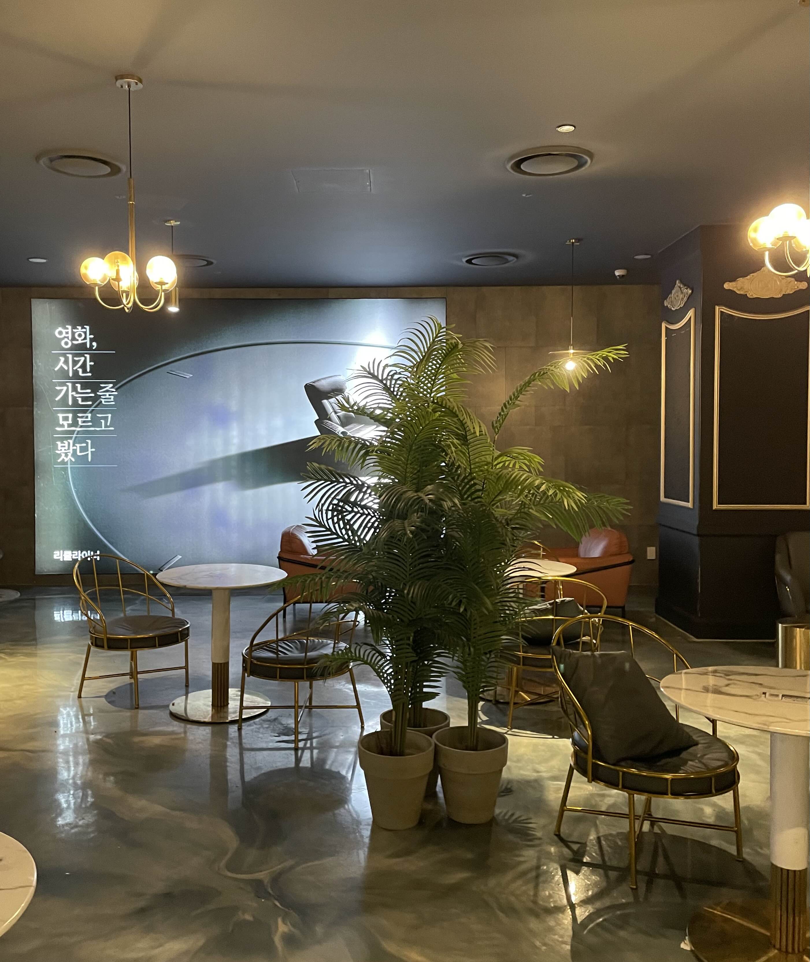 큰 영화관에 관객이 없어서 혼자 영화를 보았다.