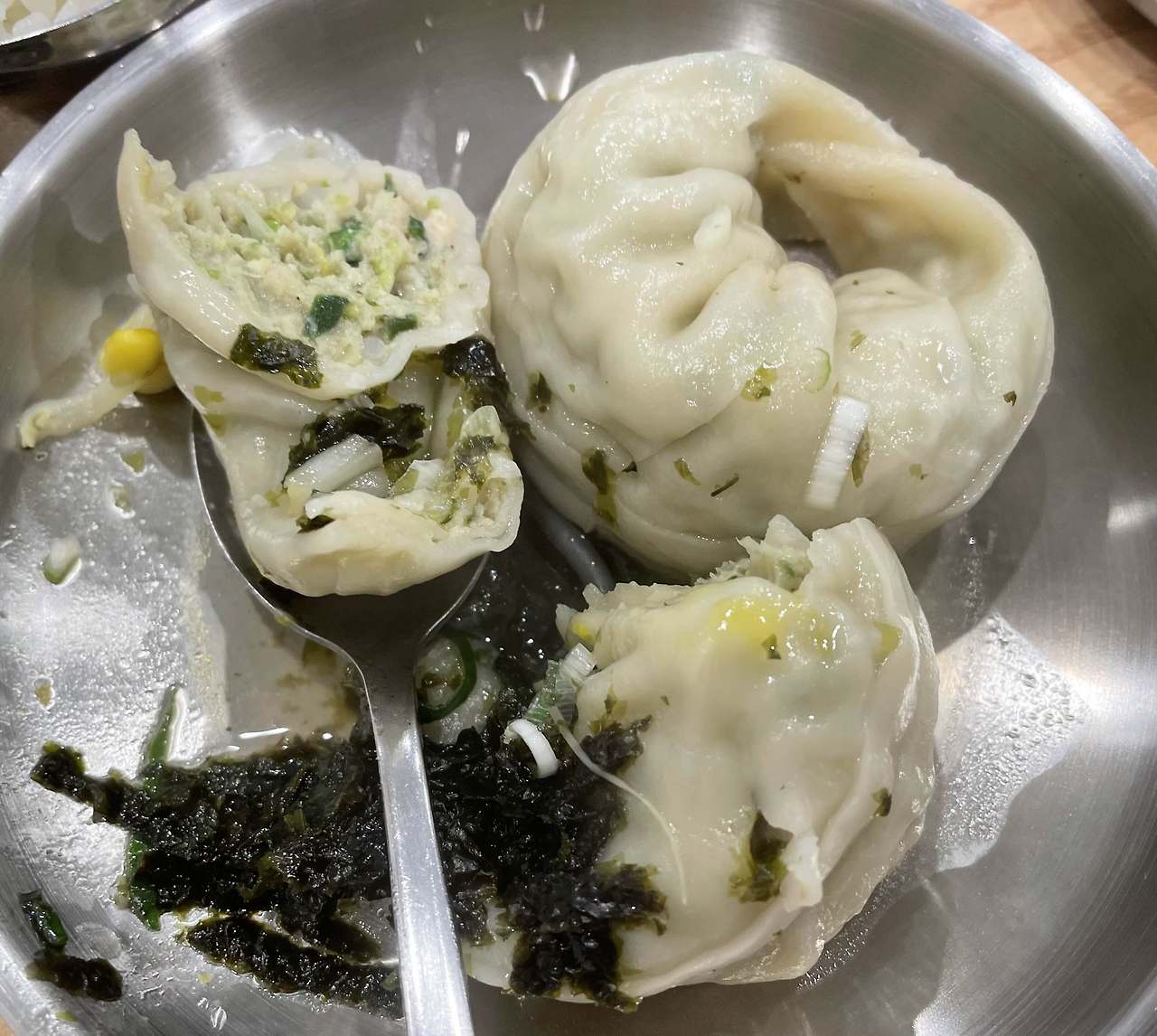 콩나물국밥에 만두 두 개가 숨겨져 있다.
