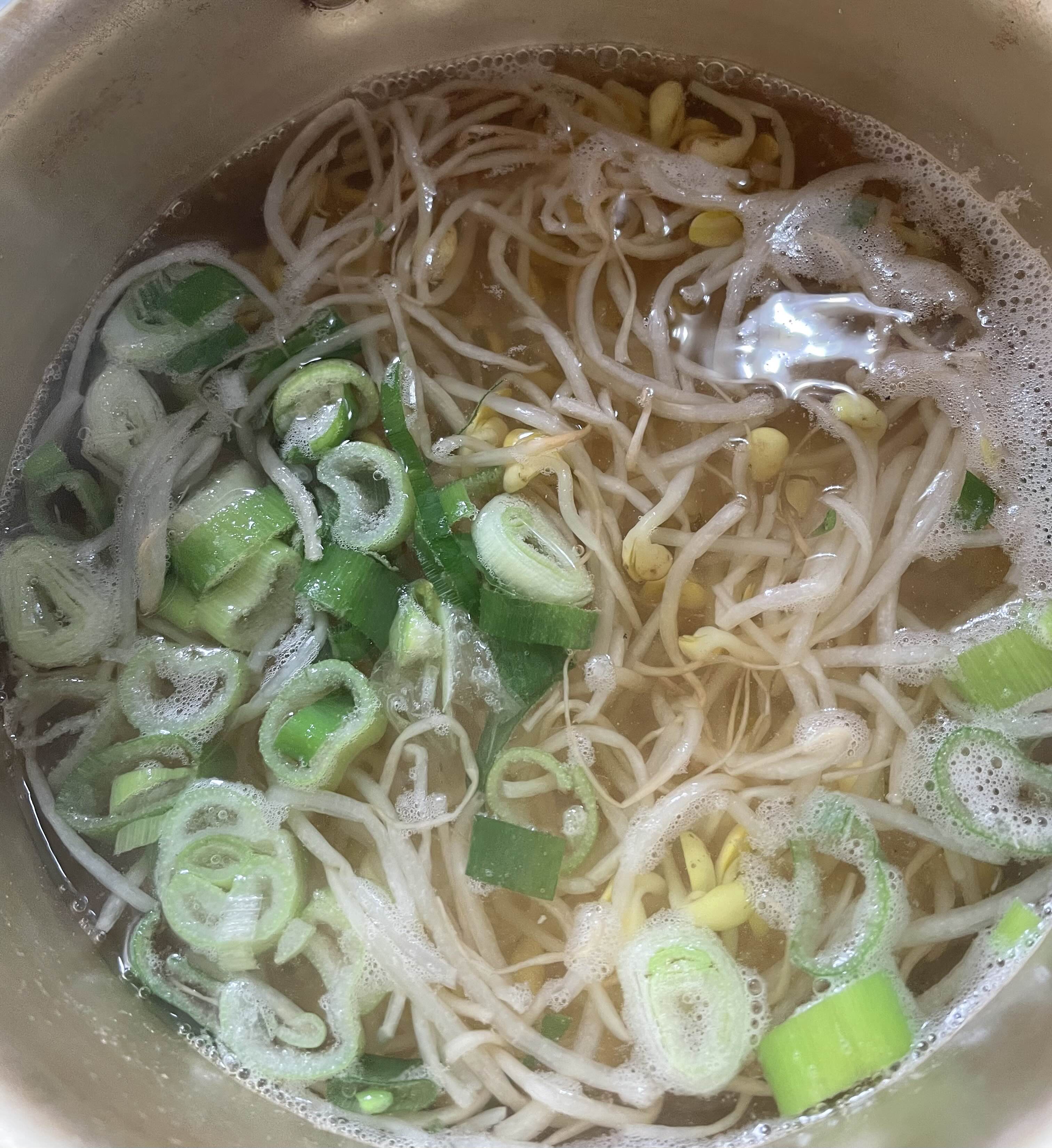 양파 제육볶음과 해물 육수의 콩나물 국.