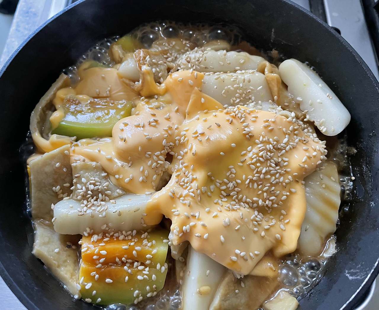 언 호박. 어묵. 그리고 절편 몇 개와 치즈.