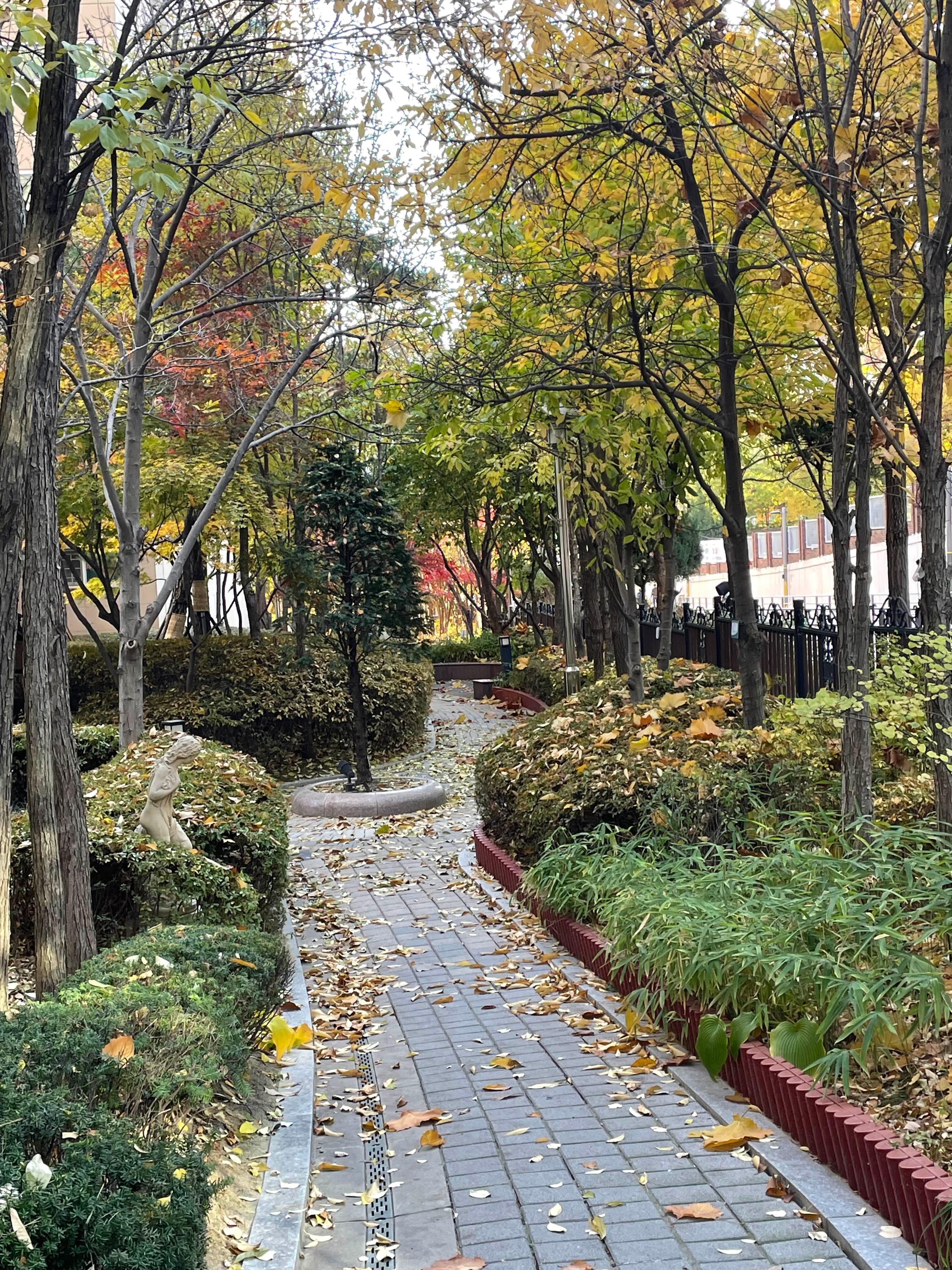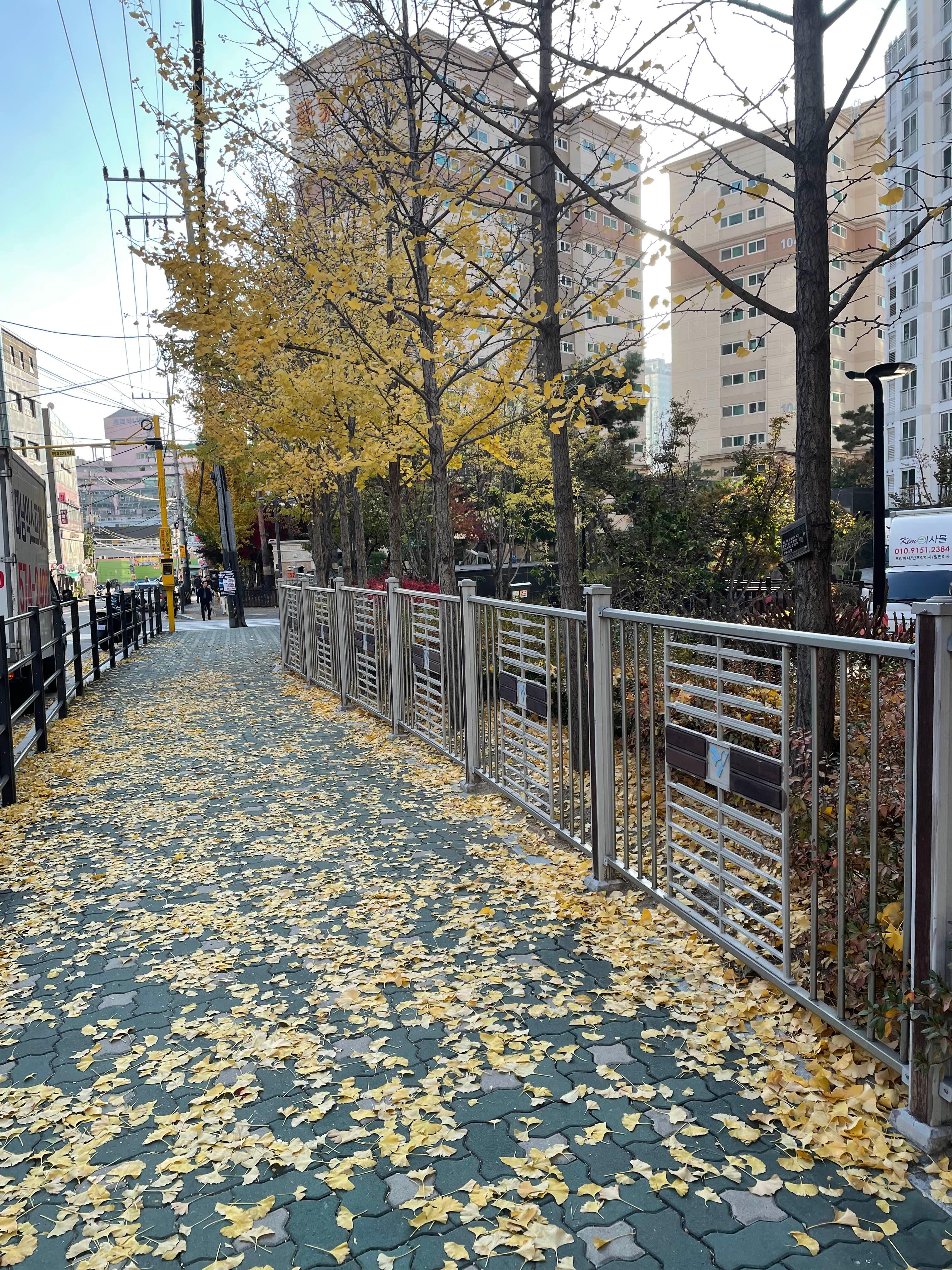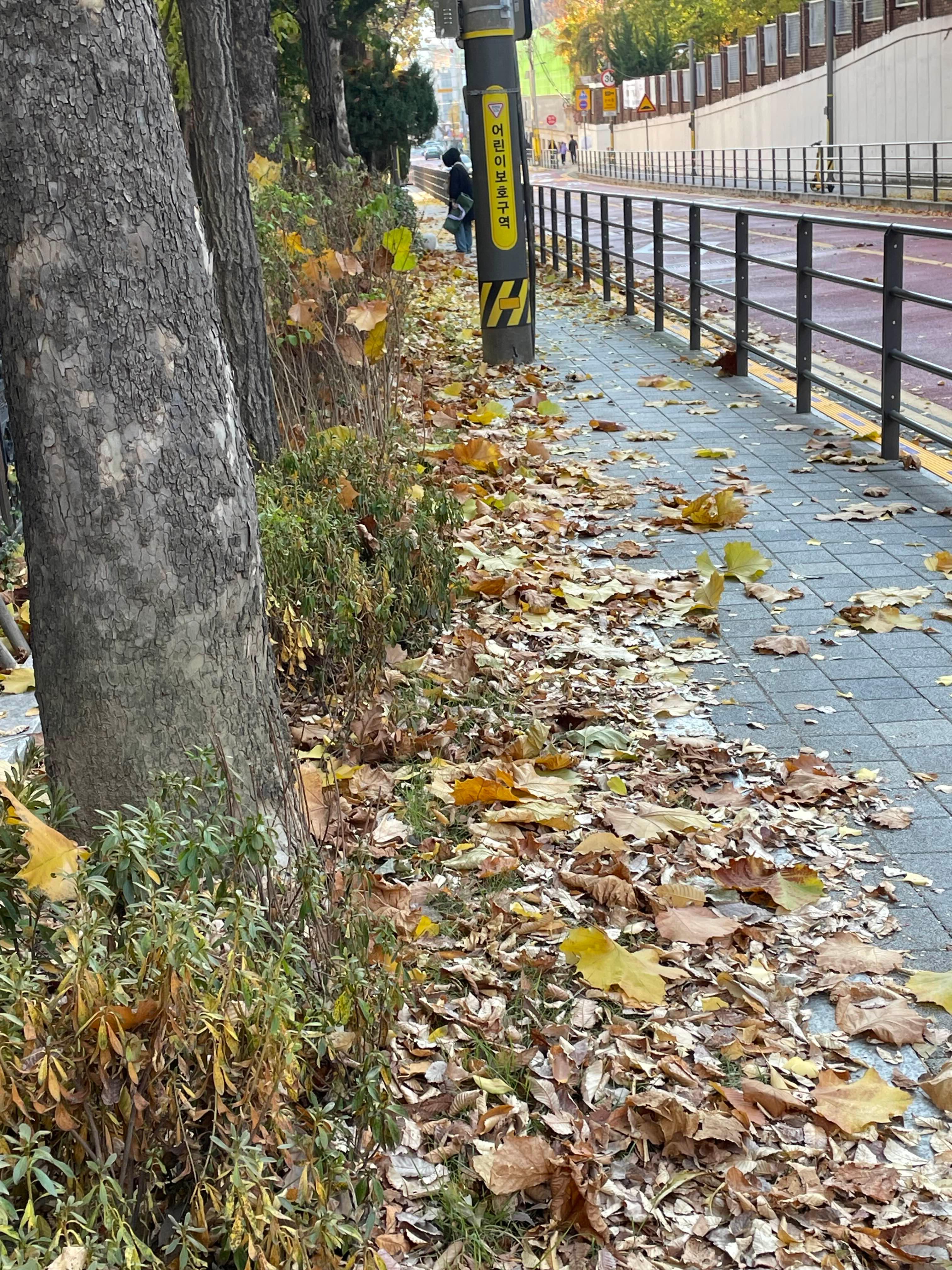 낙엽이 딱 붙은 길은 보기엔 낭만적이지만