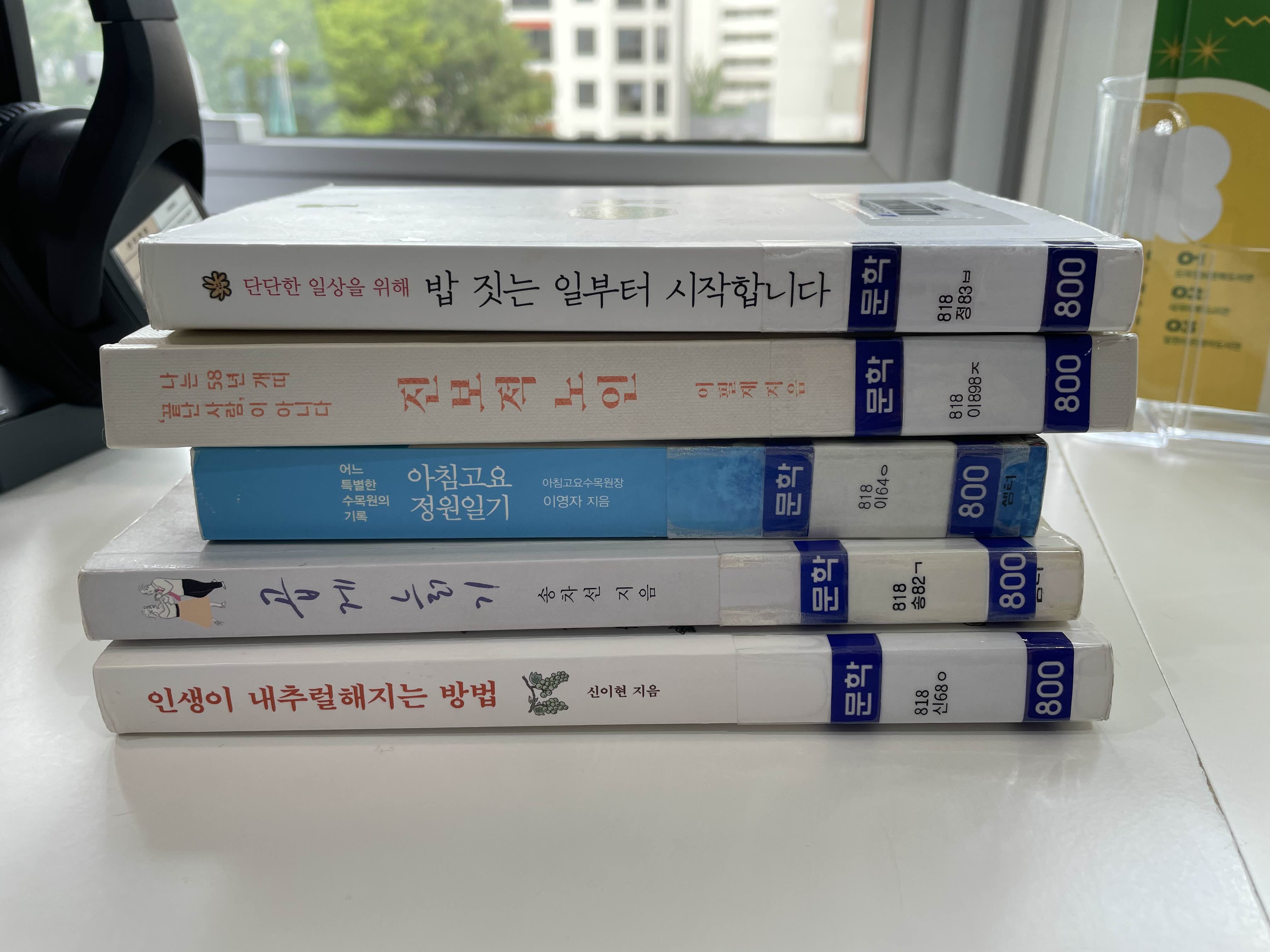 책 빌리다(6.15~6.29) 한 여름이 아닌데도 더위가 극성이다. 낮 기온이 33도가 넘었다. 집에서도 선풍기 바람만으로는 역부족이다. 그렇다고 7 월도 아닌데 에어컨을 켜기가 미안다. 그래서 도서관엘 갔는데 도서관도 덥다. 책 빌리러 도서관에 몇 번 드나들면한 달이 휙 지나간다. 나에게는 사시사철 모두가 독서의 날이다. 학교를 마치고 가장 좋은 점 중 한 가지가시도 때도 없이 책을 보는 시간이 많아서 좋다. 조용한 집이 독서하기 좋은 조건을 만들다. 잠시 쉬어가기/책 이야기 2025.06.16