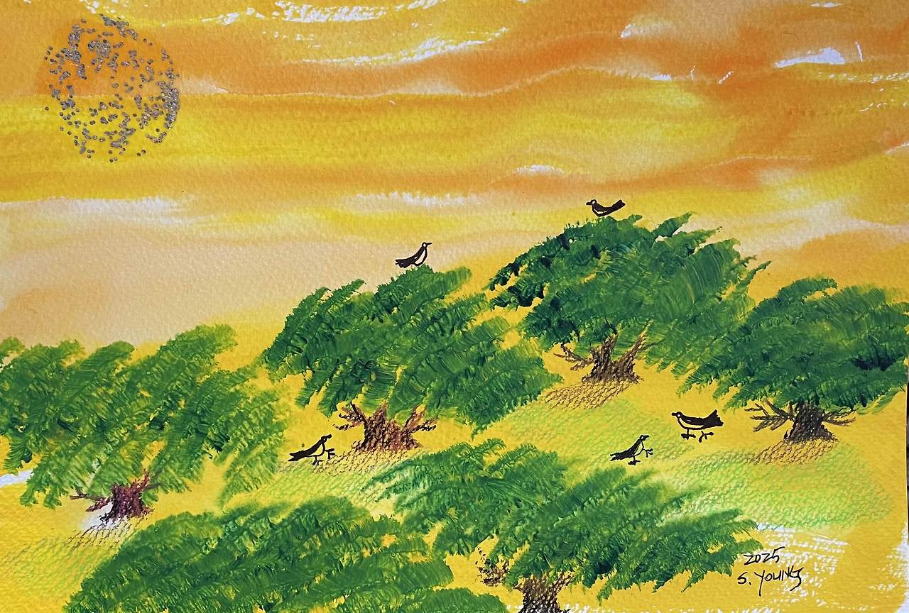 ★ 그림 설명 : 종이에 복합 재료로 그린 그림 6월의 기온이 나무들을 성장하게 한다. 청소년 같던 나무들이 이제는 청년처럼 튼실하다. 나무에 안기어 재잘거리는 새들에게도 여름의 풍성한 기운이 담겨지고 있다. 한 둘 나와서 기웃거리던 새들이 오늘은 여러 마리가 함께한다.지루할 여름이 시작되기 전 모두가 무엇을 기대하나! 사람들에게나 새들에게나 여름의 더위는 지내기 힘든 계절이다. 아마도 여름도 봄날처럼 짧게 지나쳐가고야 말 것이다. 우리 곁에 머무르는 것은 아무 것도 없다. ● 2025년 6월의 첫 목요일에~~ 제 21대 대통령선거를 잘 마쳤다. 시부님 생존시절엔 선거 날 아침엔 전화가 왔다. “** 후보를 찍어야 한다.”말도 되지 않는 요구를 끊임없이 하셨다. 아들..