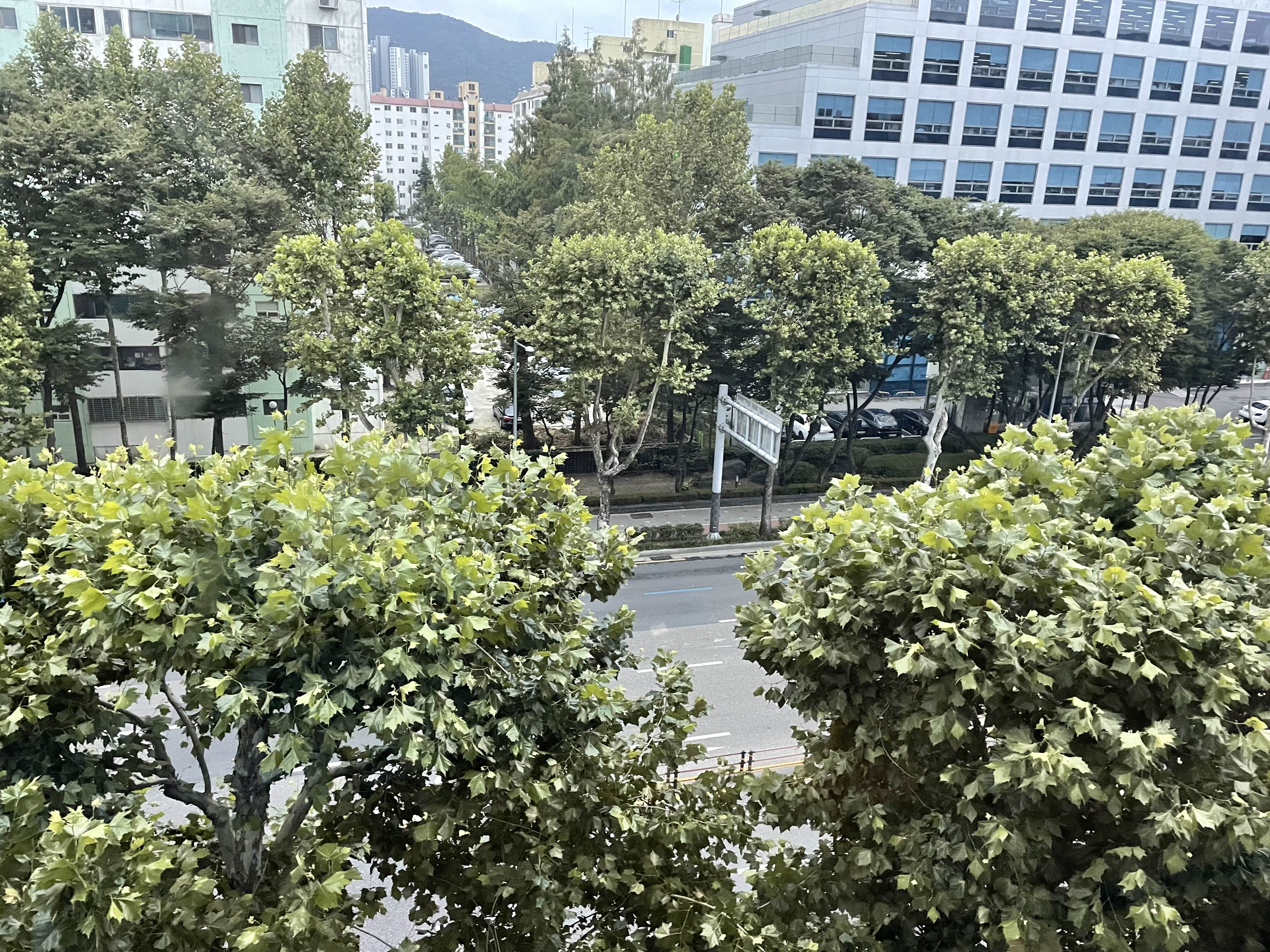 도심의 여름. 예전엔 눈앞으로 산이 보였다. 지금은 높은 건물들이 산을 대신하고 있다. 평일 오후에만 한산한 거리다. 출퇴근 시간에는 차들이 파도처럼 밀리는 곳이다. 집에서 걸어 다닐 거리에 있는 곳이다. 영화관 4 층에서 보이는 거리의 풍경이다. 얼마 전 만해도 이곳은 빈 땅이었다. 도시는 빈 땅을 허용하지 않는다. 여유가 없이 건물들로 차곡차곡 채워지다. 투정 부리기 2025.07.05