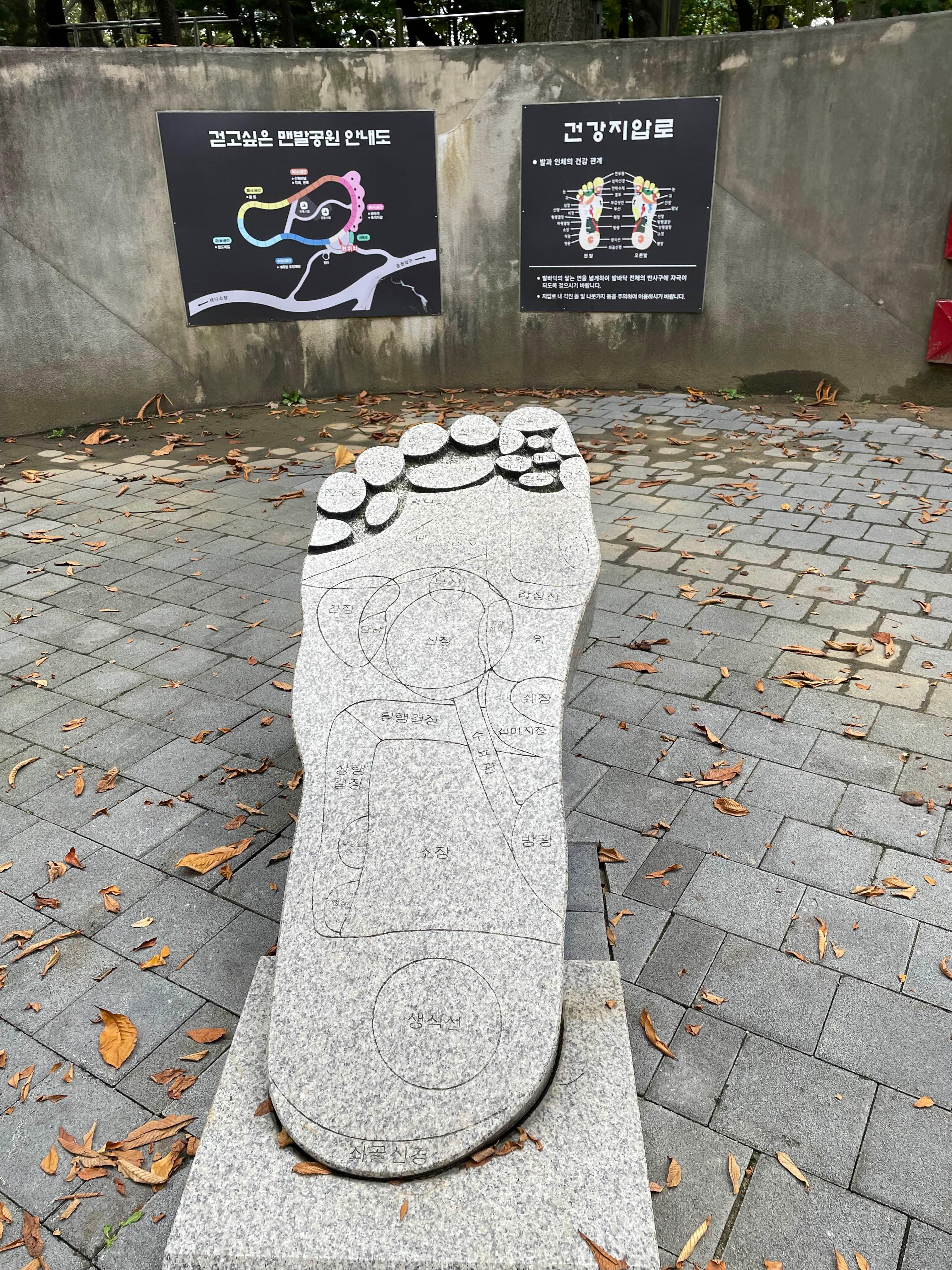 매헌 숲에서 산책 중 매헌 숲으로 오후 산책을 나오다. 산책하는 사람들이 많다. 가을의 빛이 완연하다. 해가 숨은 날이라 비 내리기 직전의 날씨 같다. 산책하기는 좋은 날이지만 기분이 우중충하다. 바람에 은행알들이 숲의 바닥을 카펫처럼 덮다. 행인들 발에 밟히고 차인 은행알 덕분에매헌 숲이 은행알 냄새로 꼬리꼬리 하지만 온전한 자연의 냄새라 좋다. 지압길을 걷다. 발바닥이 얼얼하면서 불이 나는 것 같다. 사진속으로~` 2025.10.09
