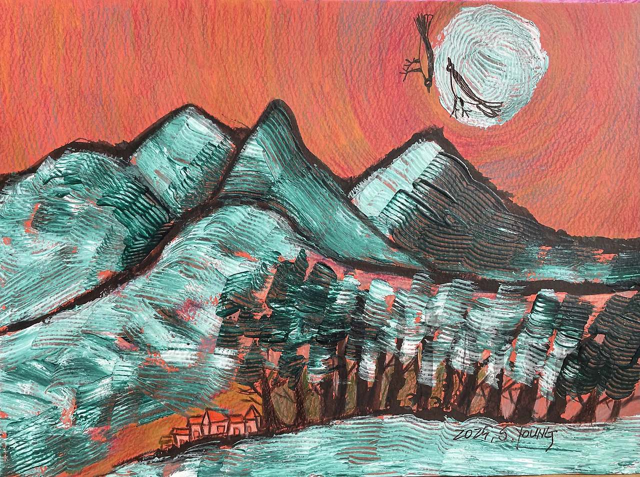 2025년 10월의 둘째 목요일에~~ ★ 그림 설명 : 종이에 복합재료로 그린 그림 눈앞에 펼쳐지는 산이 정갈해지고 있다.가을이 성큼성큼 큰 발걸음으로 달려오더니자연의 모습이 차분하게 가라앉고 있다. 얼마 전 까지만 해도 부산스럽던 산의 숲이차분하게 가을과 겨울을 준비 중인가보다. 가을비가 그친 하늘은 붉다.새는 하늘에 걸린 달에 앉으려다 미끄러지다.낮의 해가 너무 밝아 밤부터 떠 있던 달을 누구도 모른다. 비가 그치고 하늘이 붉게 물들다.하늘서 오래 기다린 달이 모습을 드러내다.눈에 보이는 것만이 다가 아니란 생각에확답을 주는 달이다. ● 2025년 10월의 둘째 목요일에~~ 식구가 다 모여야 6명이다.어른이 넷에 아이가 둘이다. 2025년의 추석도 잘 보냈다.식구가 없어도 송편과 부침개는 샀다. 딸이 .. 마음의 목요편지 2025.10.09