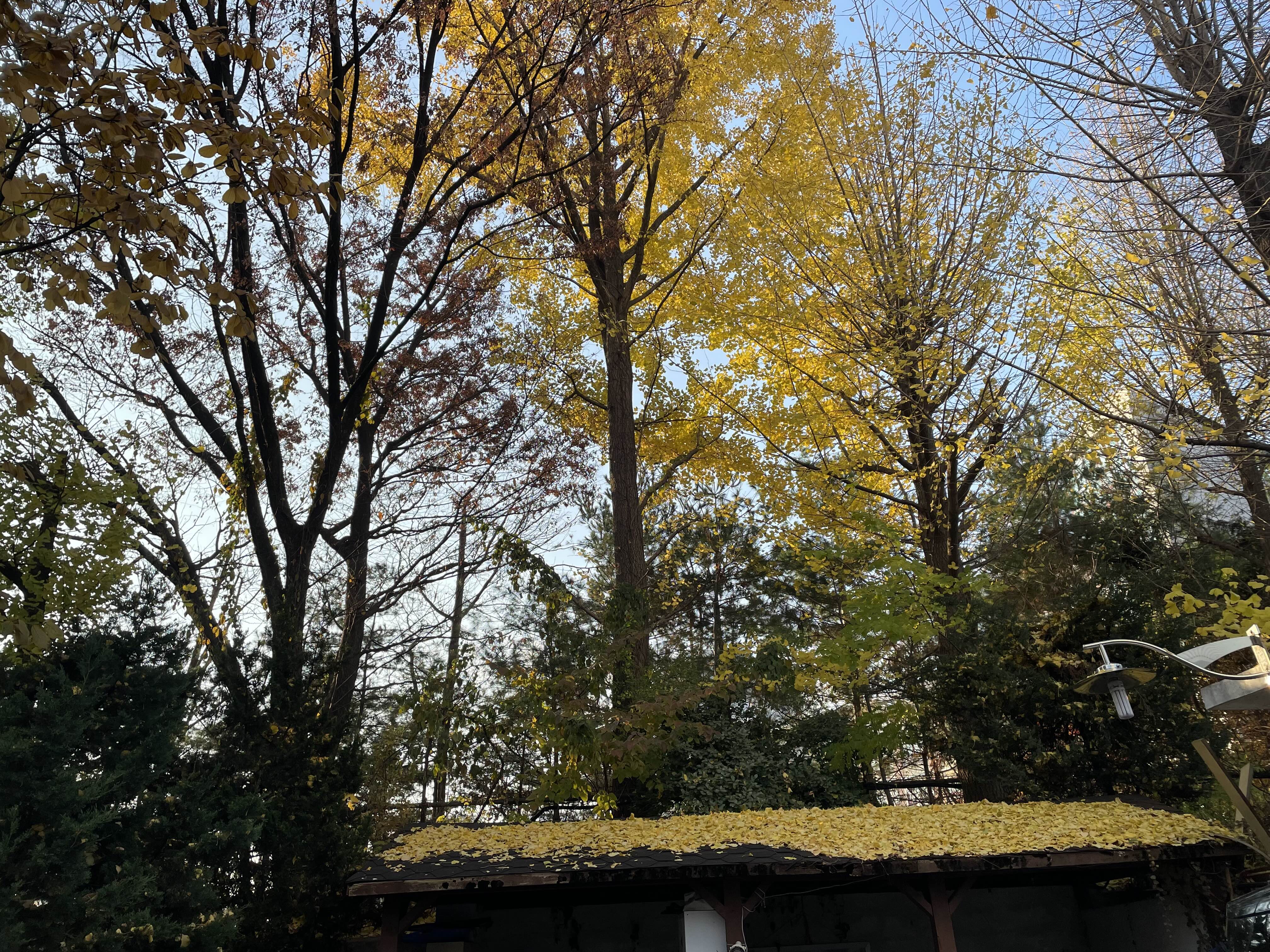 가을이 절정이다. 우리 아파트는 오래 된 곳이라나무들도 나이가 들어 점잖다. 어지간한 바람에도 요동하지 않는다. 아주 조용히 가랑비처럼 낙엽을 내리다. 지붕 위로 내려앉은 노란색 낙엽이언제 보아도 의젓하다. 가을이 지나가고 있다. 바람 속에 겨울의 매정함이 담겨있다. 잠시 쉬어가기 08:15:26