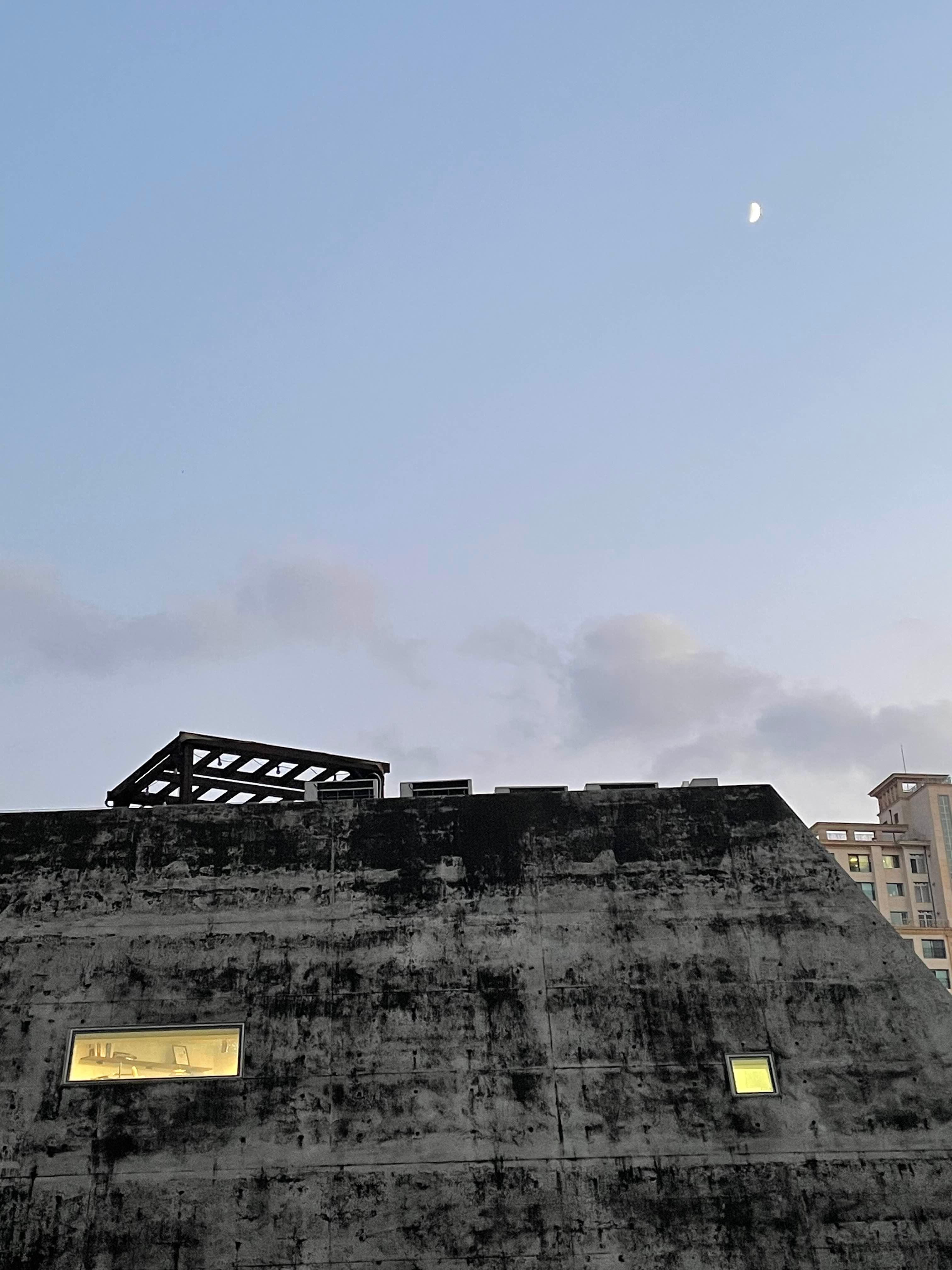 해내림의 겨울하늘 검은 건물이 말간 하늘을 배경으로 두다. 해가 지나가니하루 종일 기다림으로 지친 반달이 보이다. 겨울하늘의 달은 무엇인지는 모르나 쓸쓸해 보인다. 다 같은 하늘의 일이거늘 내 마음이 변덕을 부리는 것인 안타깝다. 투정 부리기 07:59:49