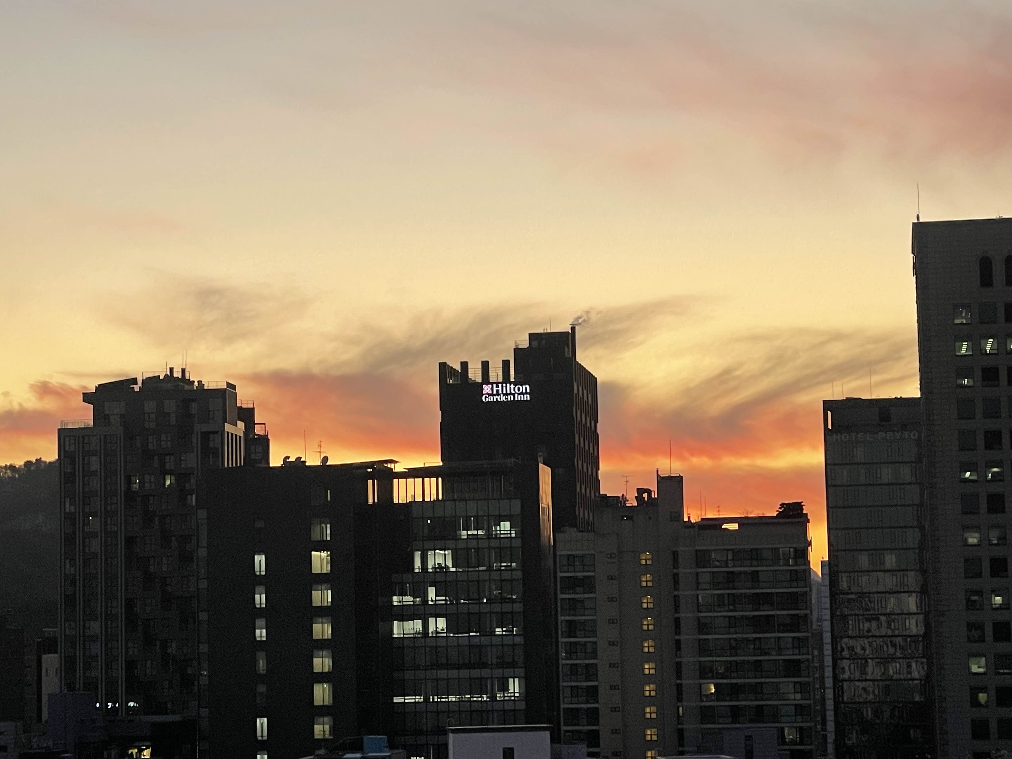 눈 온 뒤의 해내림 서쪽하늘이 붉게 물들다. 해내림도 추워 보이다. 새벽에 내린 눈이 운동장을 덮었다. 강남의 집들 배경으로 겨울노을이 번지다. 묘한 빛도 순식간에 어둠이 삼킬 것이다. 사진속으로~` 2025.12.05